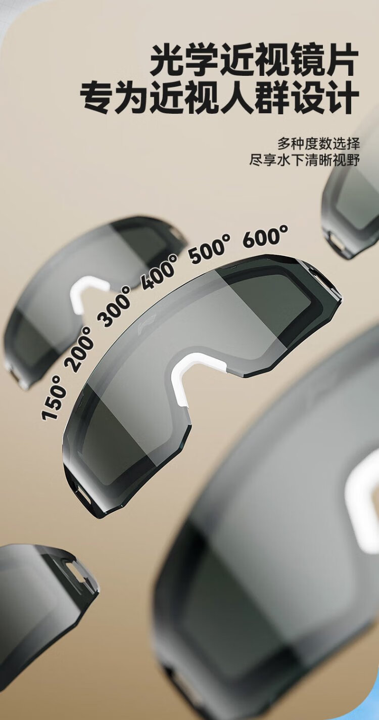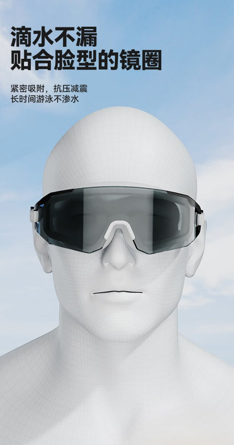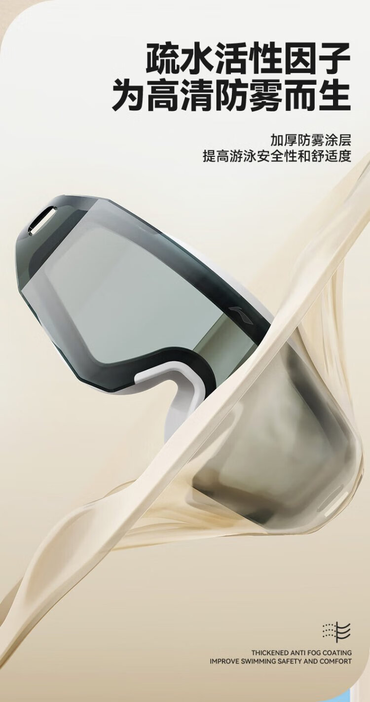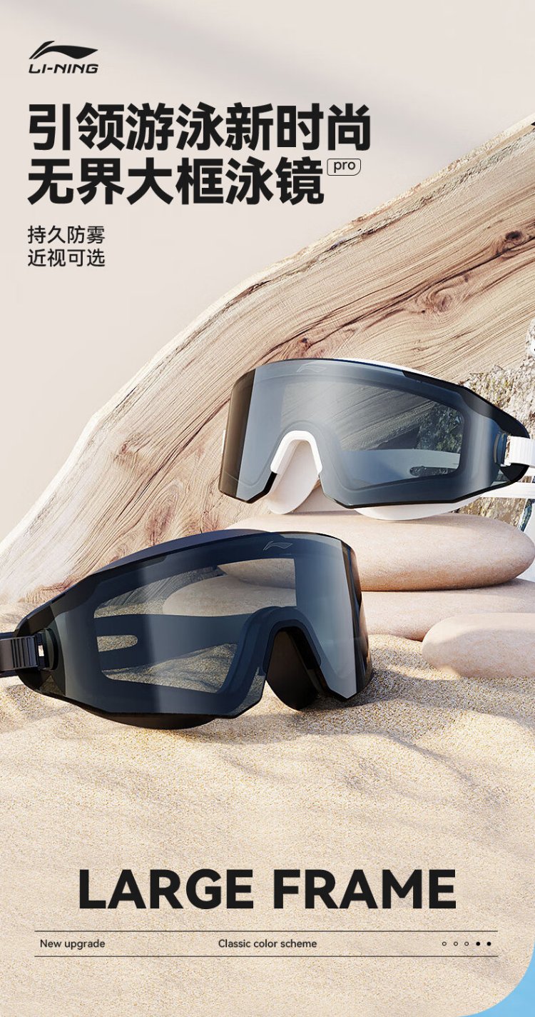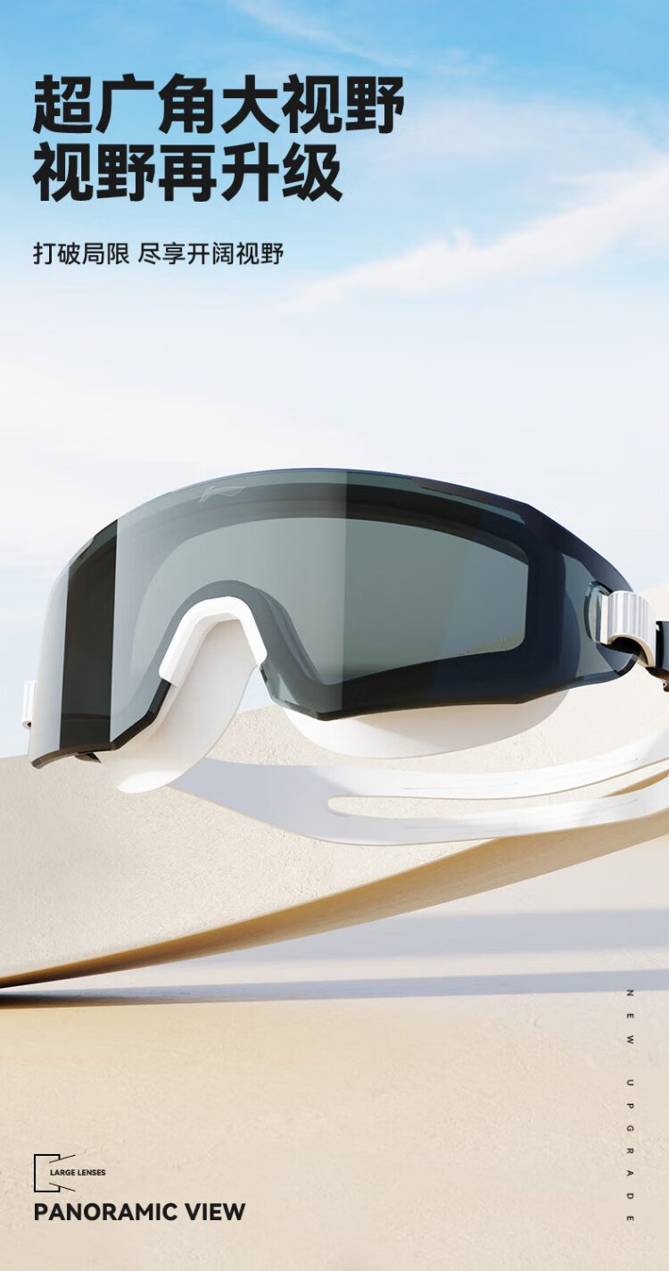 Li Ning (LI-NING) swimming goggles high-definition waterproof and anti-fog large-frame swimming goggles for adults and men unisex fashionable diving goggles 5361 black crystal flat