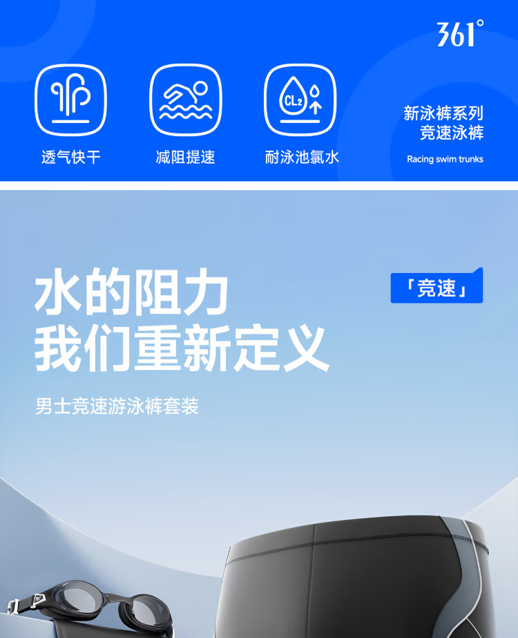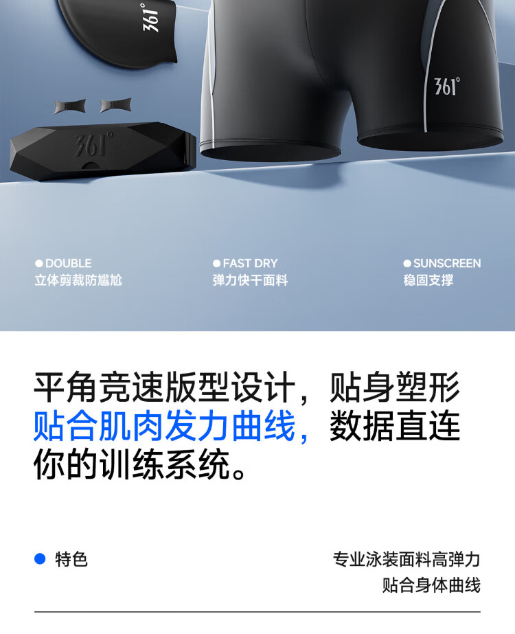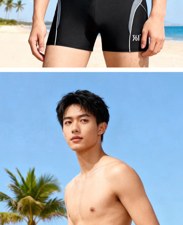 361 swimming trunks men's swimming goggles and swimming cap set boxer swimsuit professional training swimming shorts anti-embarrassment quick-drying large size pants