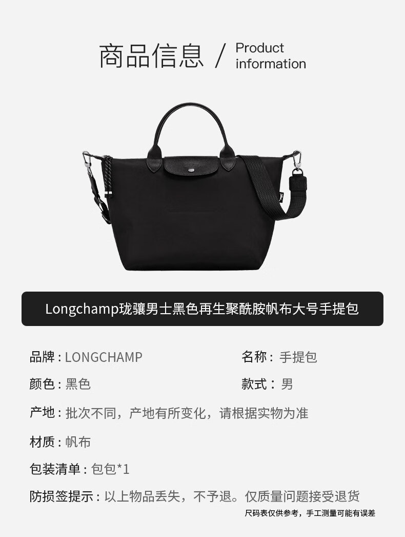 LONGCHAMP Men's Black Recycled Polyamide Canvas Large Handbag L1515HSR001 Valentine's Day Gift Luxury