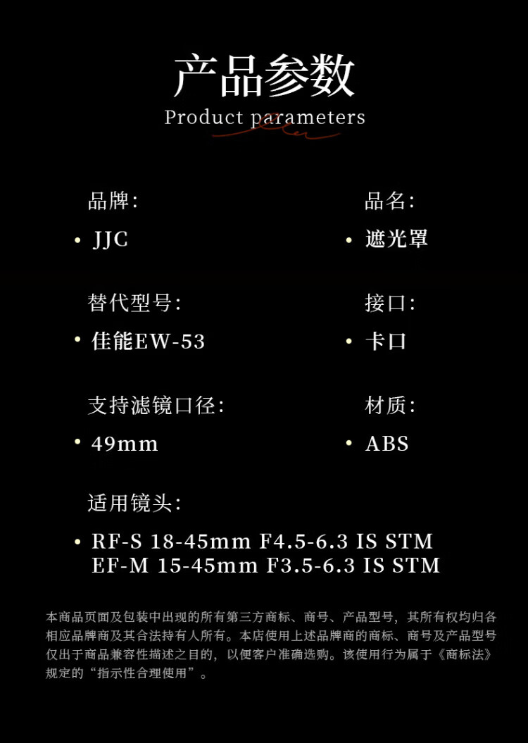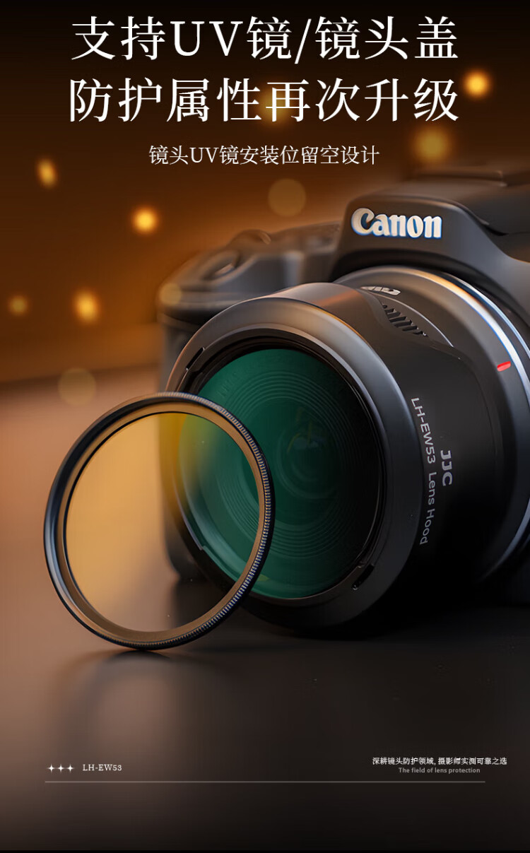 JJC passend für Canon RF-S 18-45 IS STM Gegenlichtblende 49mm Objektiv R10 R50 + UV-Objektivset