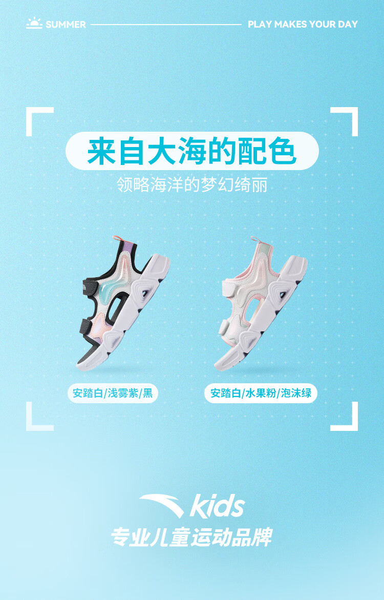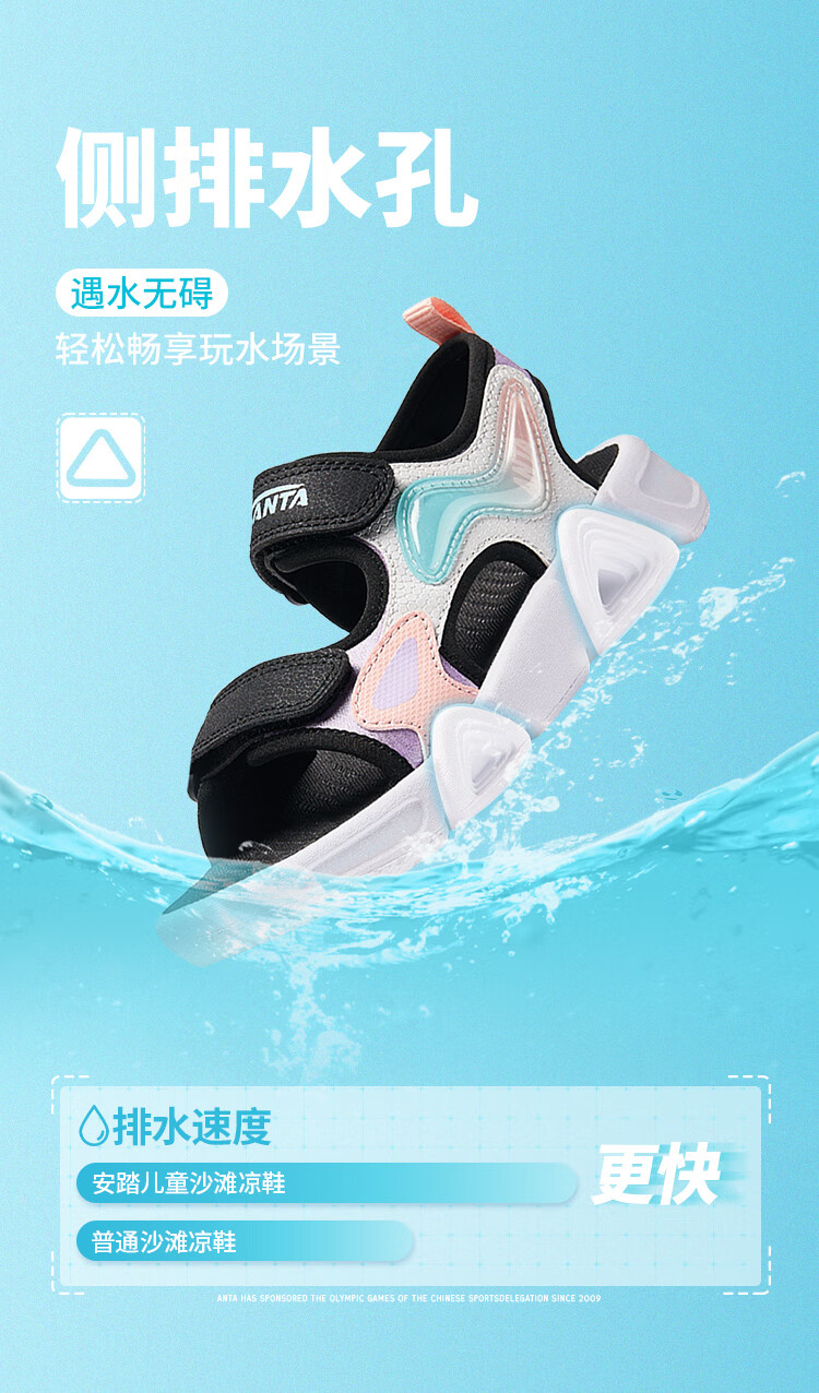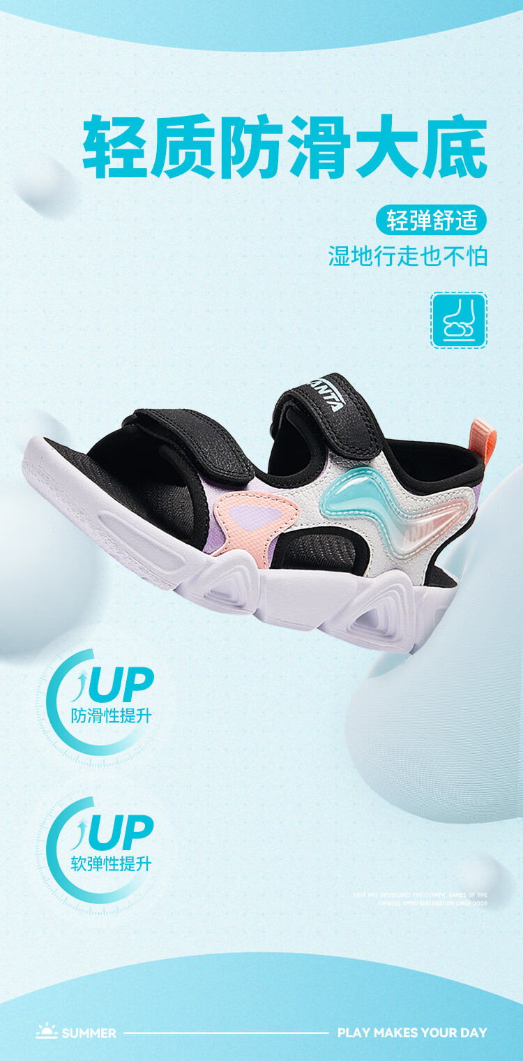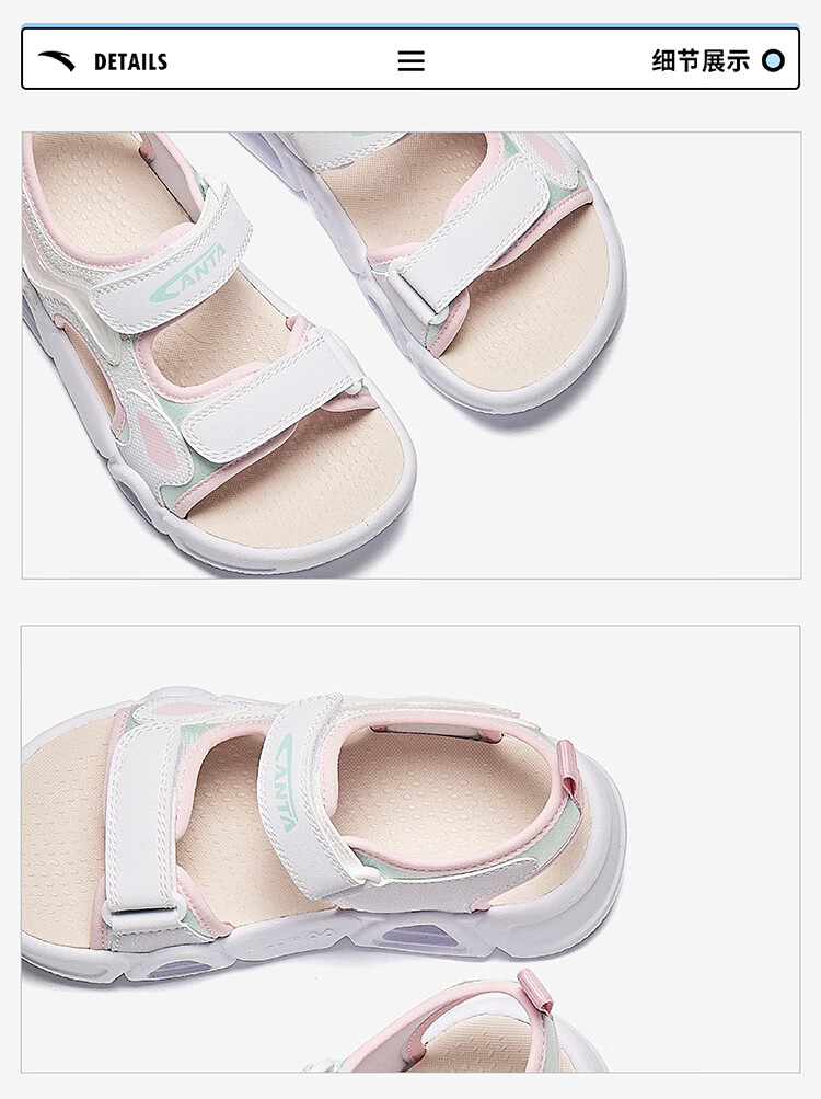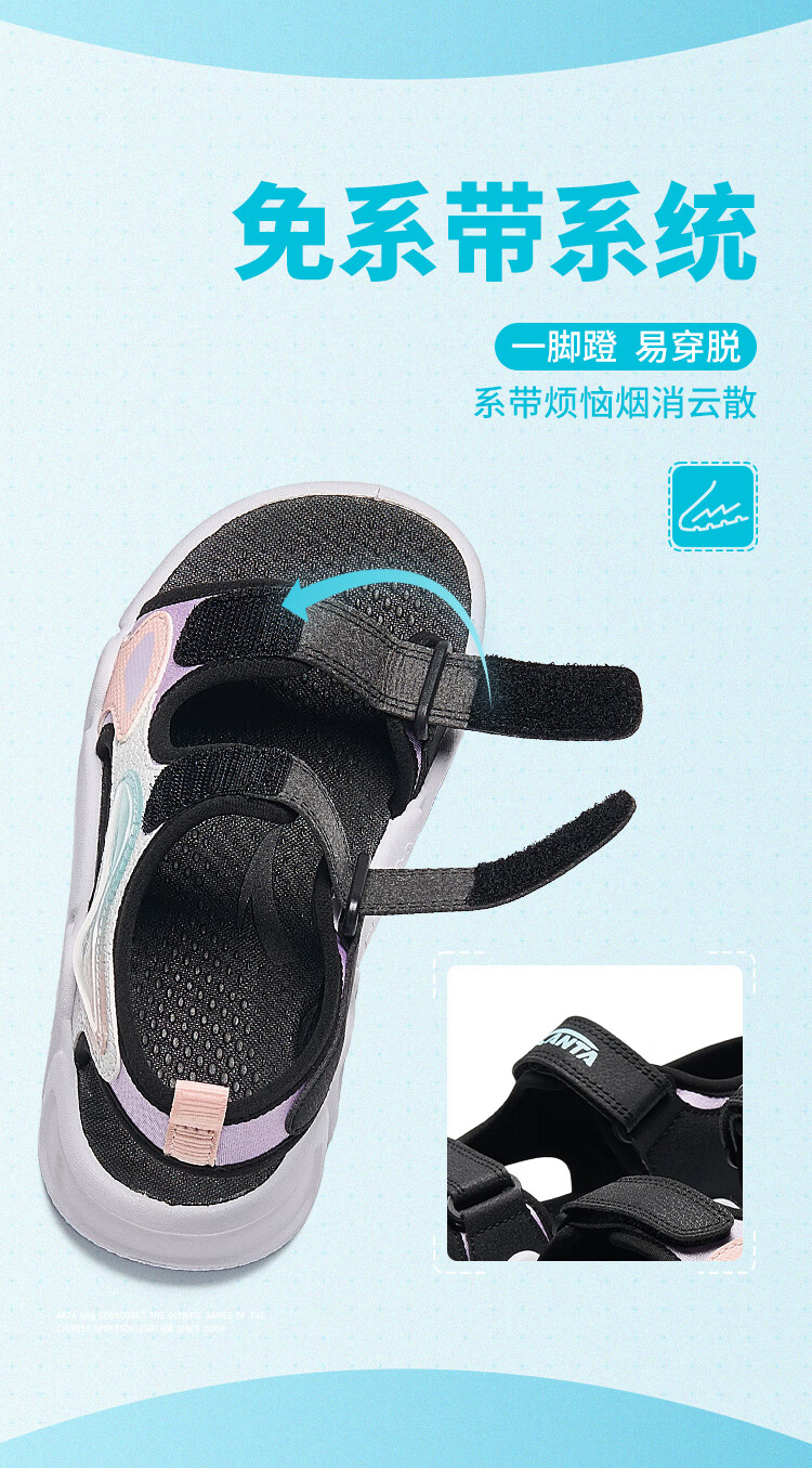 ANTA children's sandals for girls summer breathable Velcro outdoor cushioning open-toe beach shoes A322429910