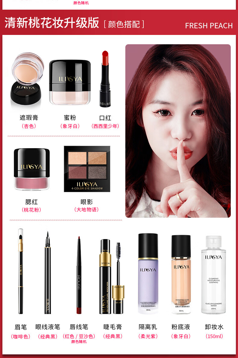 ILISYA New Year's gift, soft color cosmetics complete set, double-layer makeup box, 27 pieces for girlfriend and wife