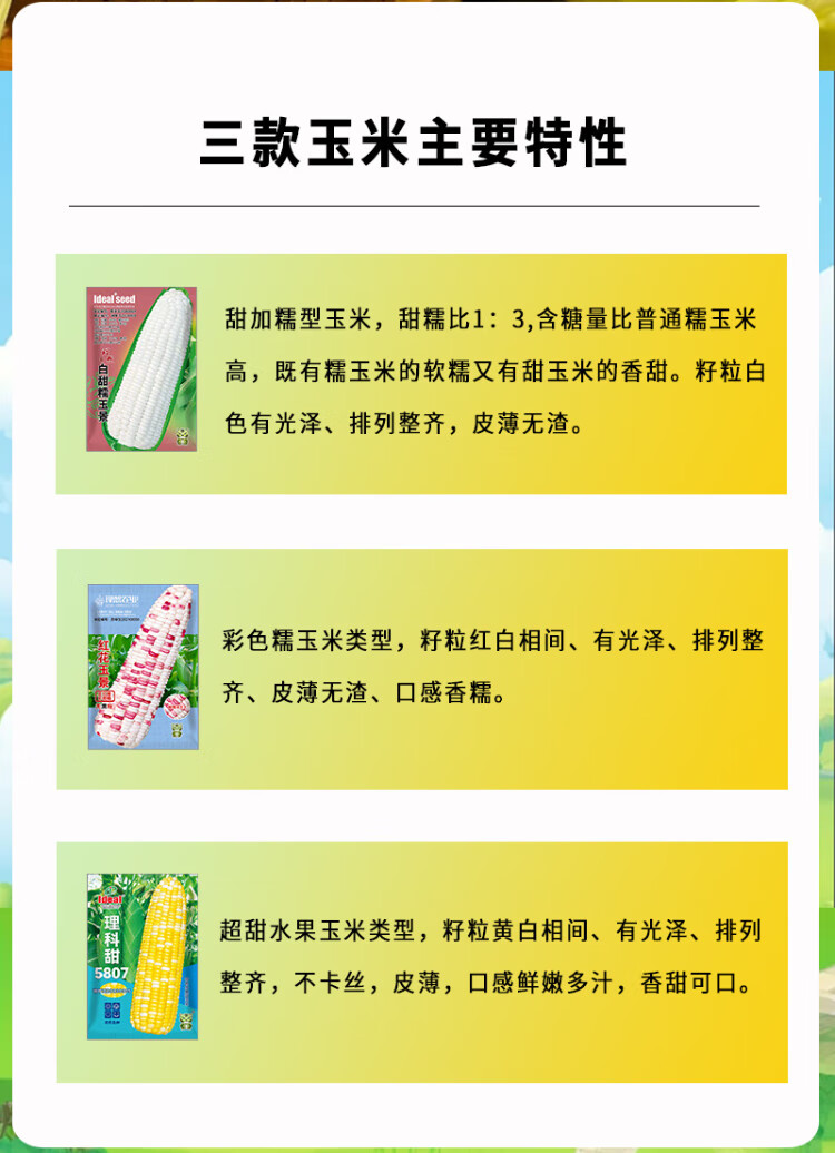 Ldeal ideal agriculture fruit sweet corn seeds field non-GMO high-yielding sweet and crisp corn seeds that can be eaten raw