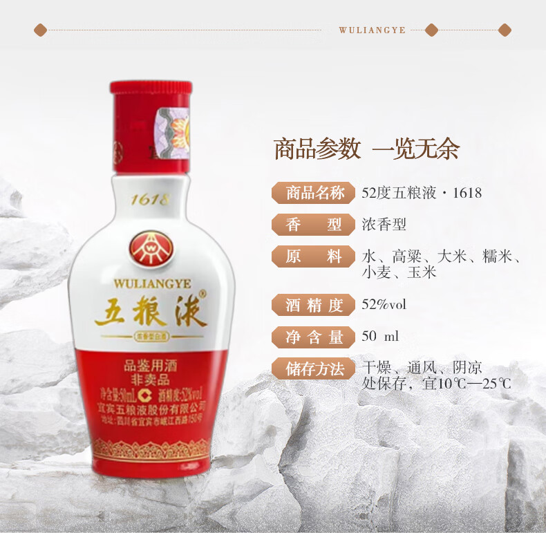 Wuliangye 1618 strong aroma 52% 50ml single bottle (do not take photos when tasting the wine) (shipped in new and old packaging)