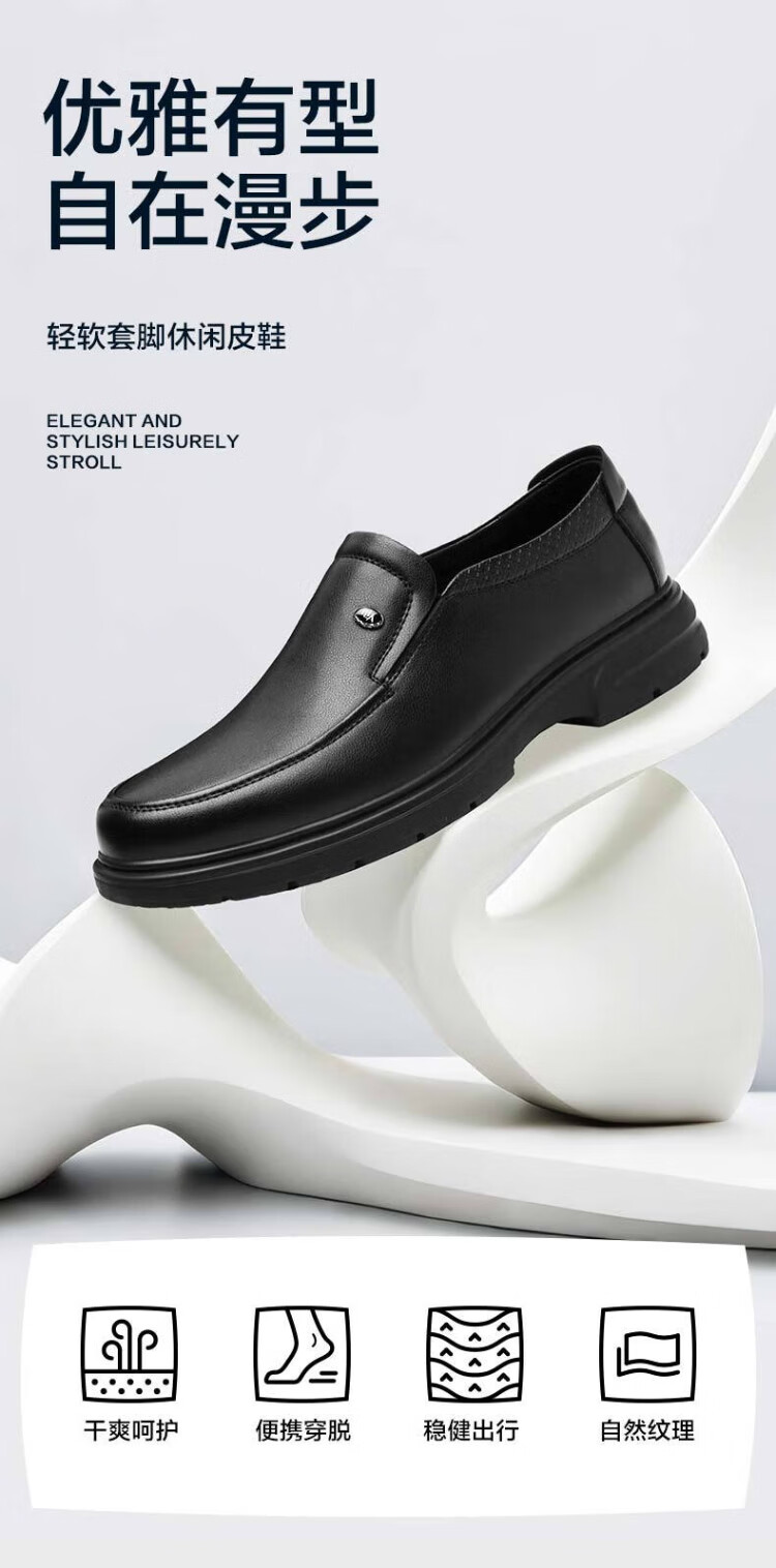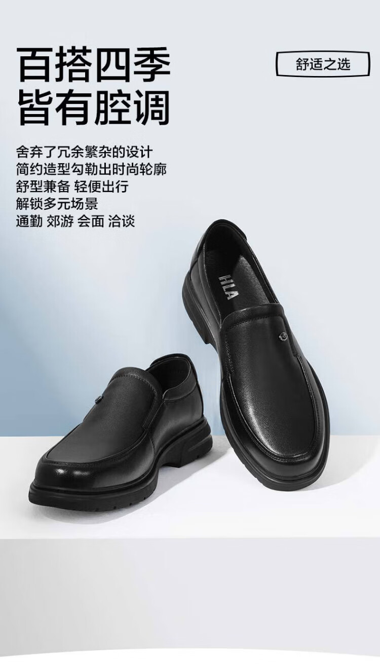 Hailan House HLA leather shoes men's breathable business casual slip-on men's shoes HAAPXM1DAL069 black 42
