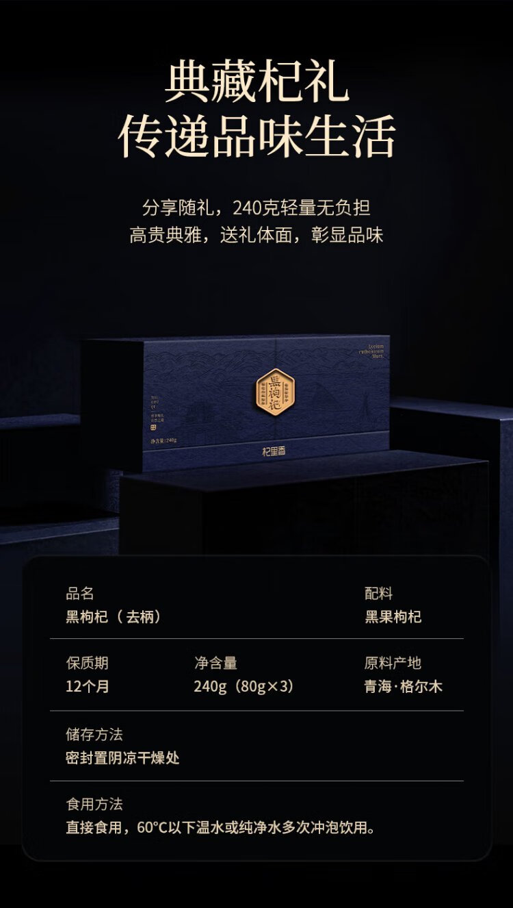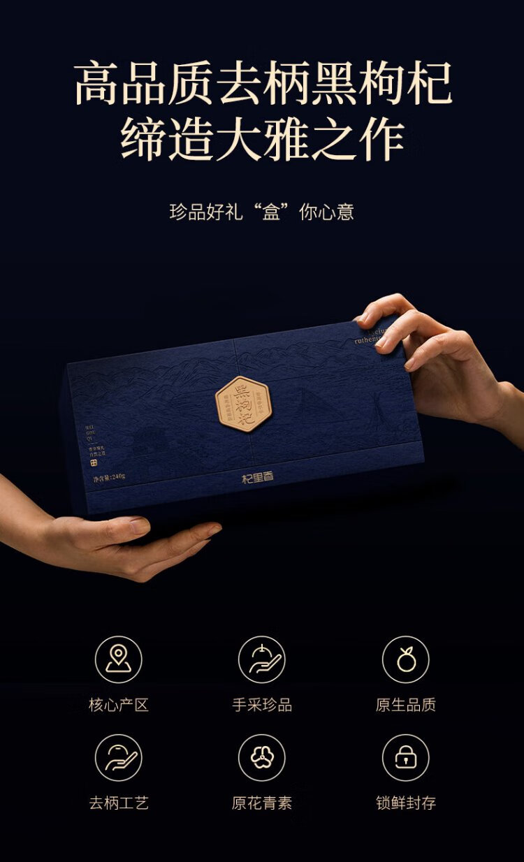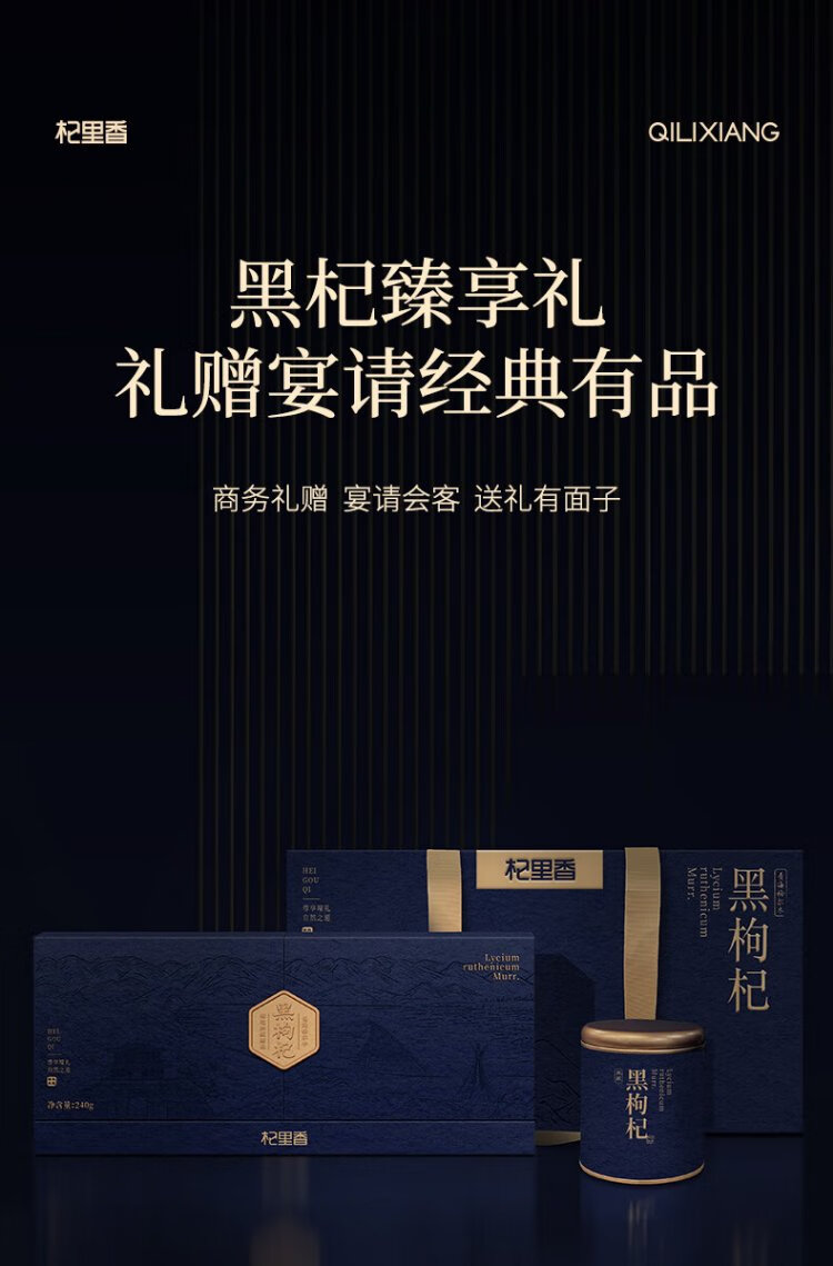 Qilixiang black wolfberry gift box with stems removed 240g (80g*3) as a nourishing and nutritious new year gift for the elders, high-end and practical