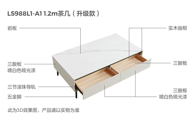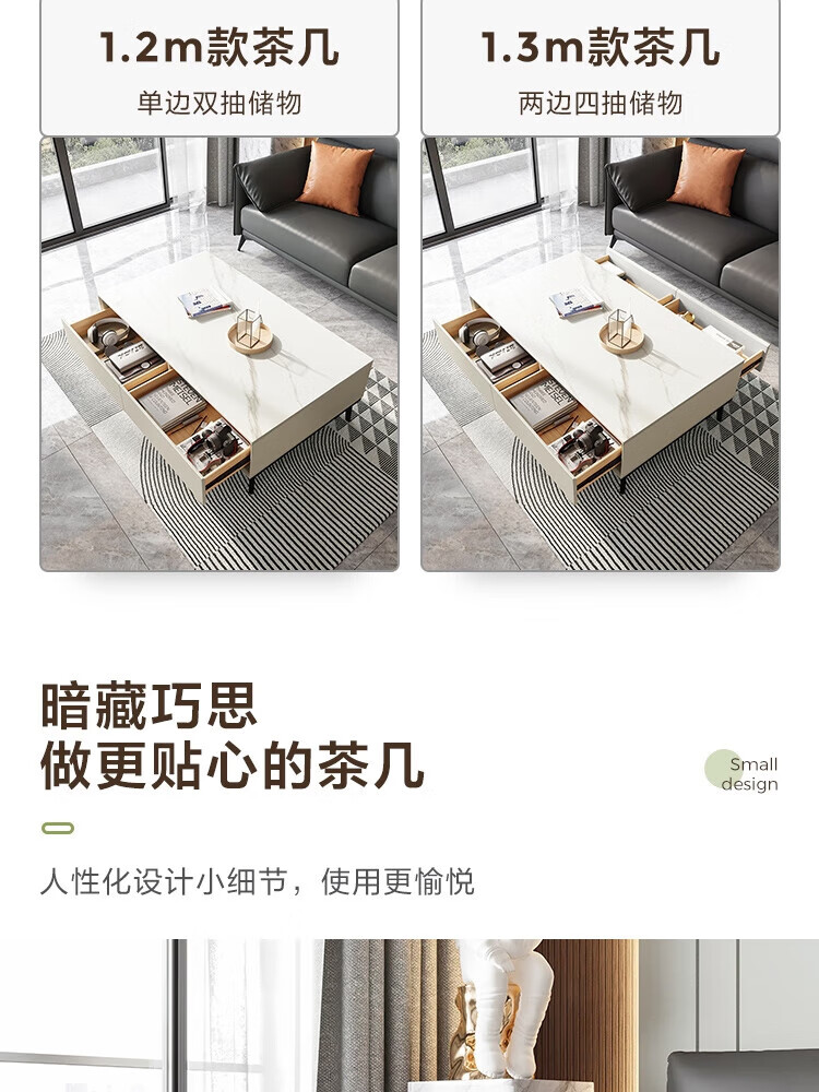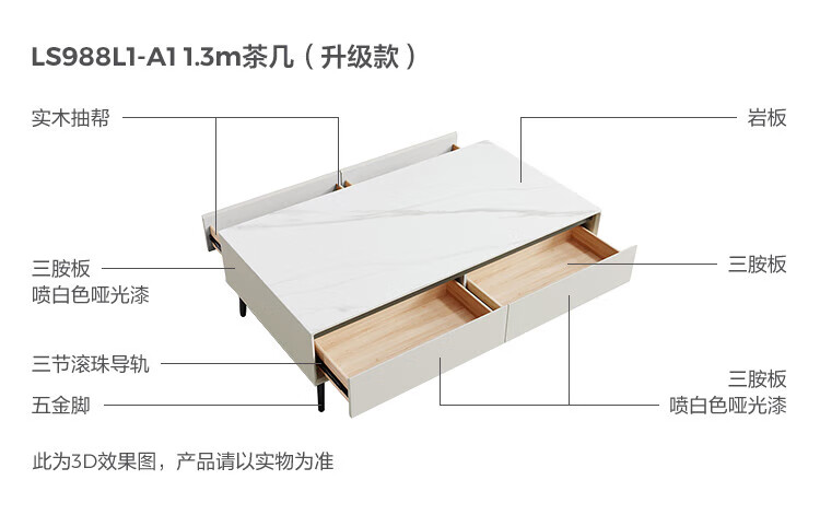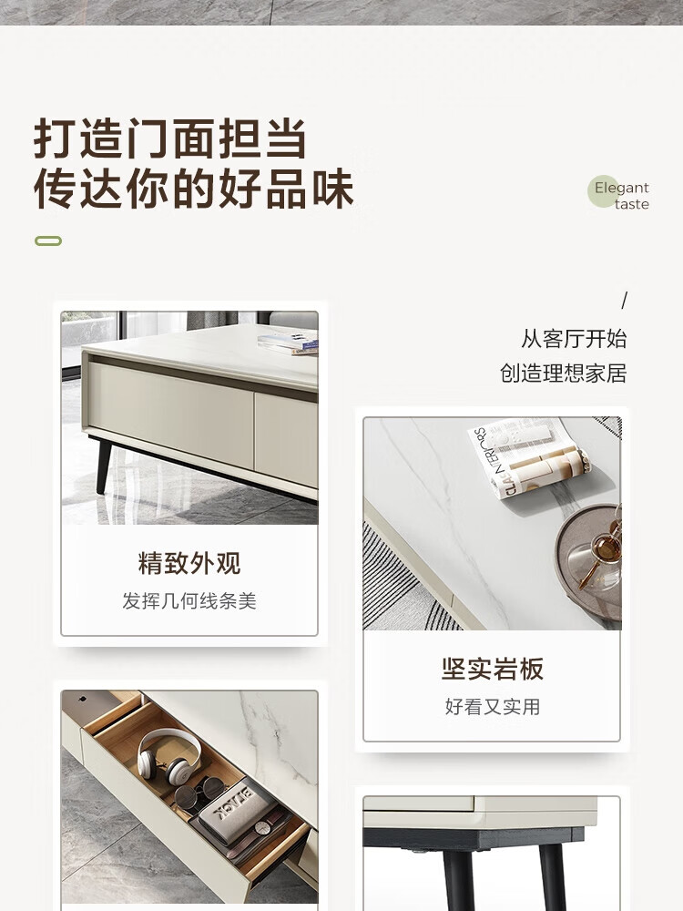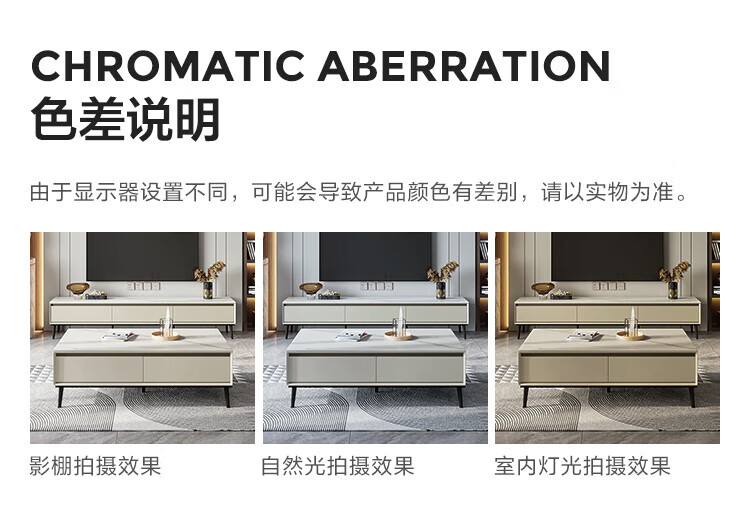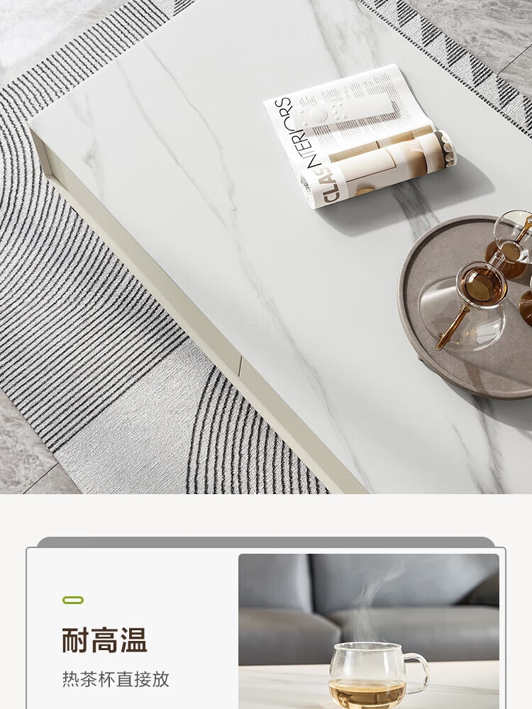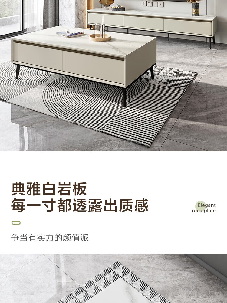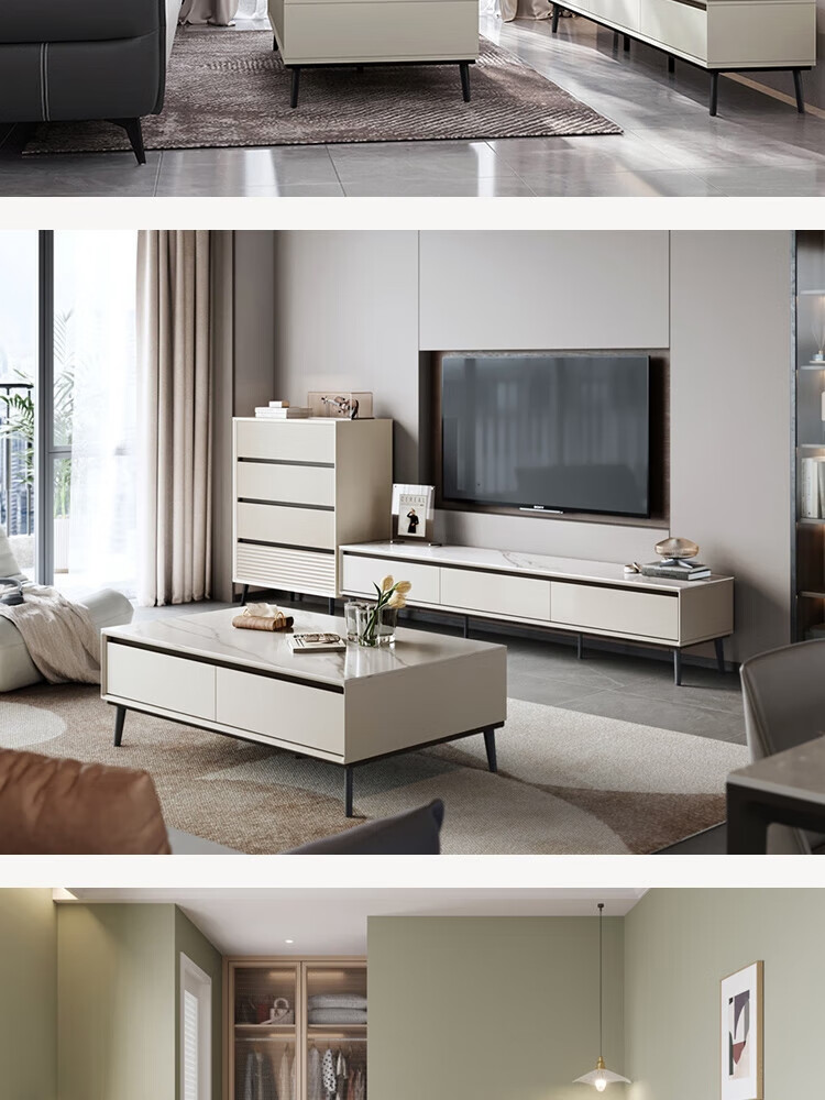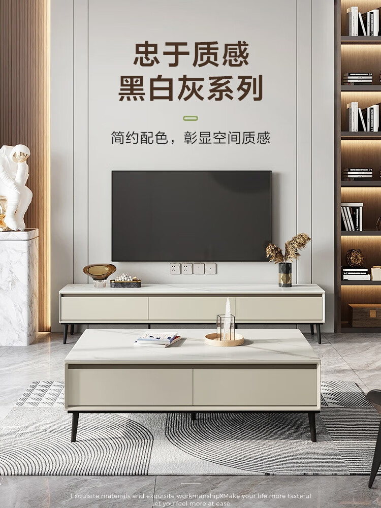 Lin's Home Light Luxury Slate TV Cabinet Coffee Table Combination New Floor Cabinet Living Room Home 1.3 Meter Coffee Table LS988L1