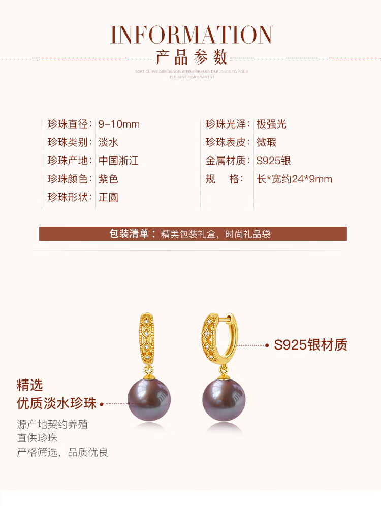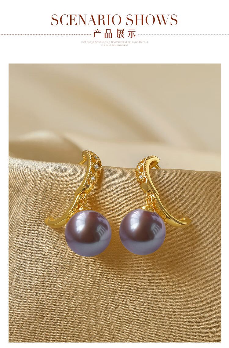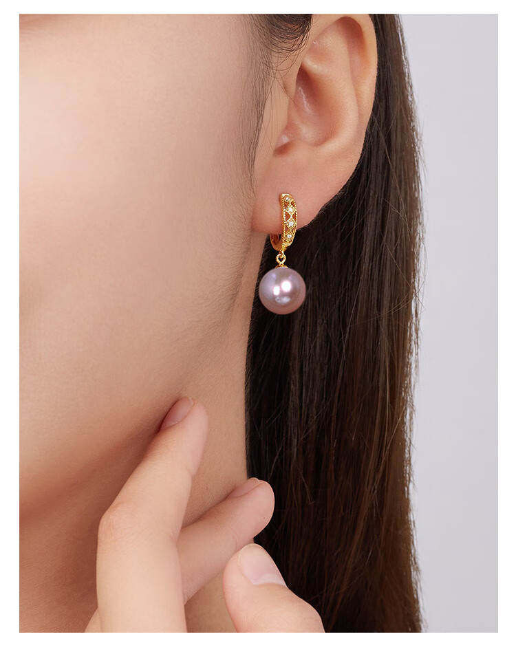 Queen of Pearls Nine Purple Lihuo 9-10mm Purple Freshwater Pearl Earrings Earrings Earrings Birthday Gift for Women