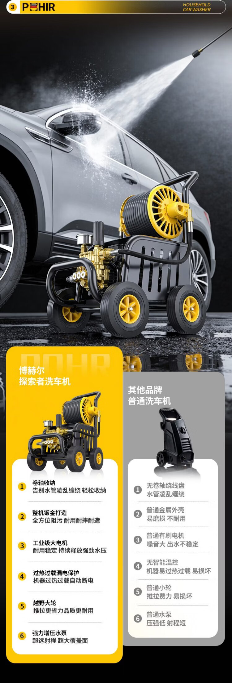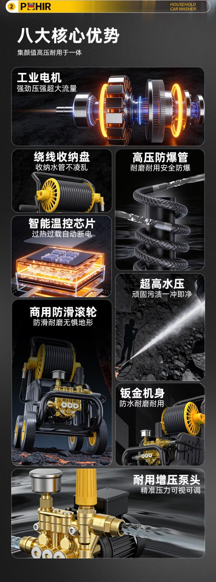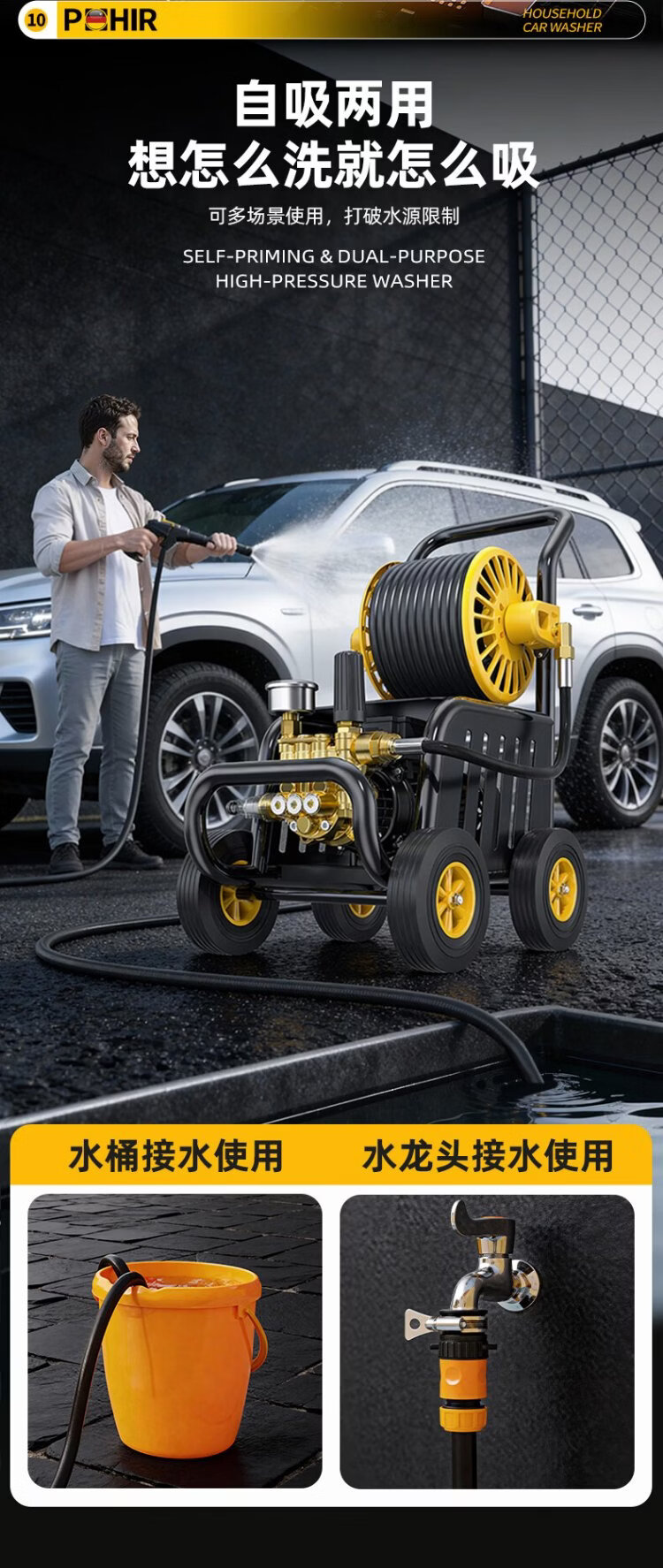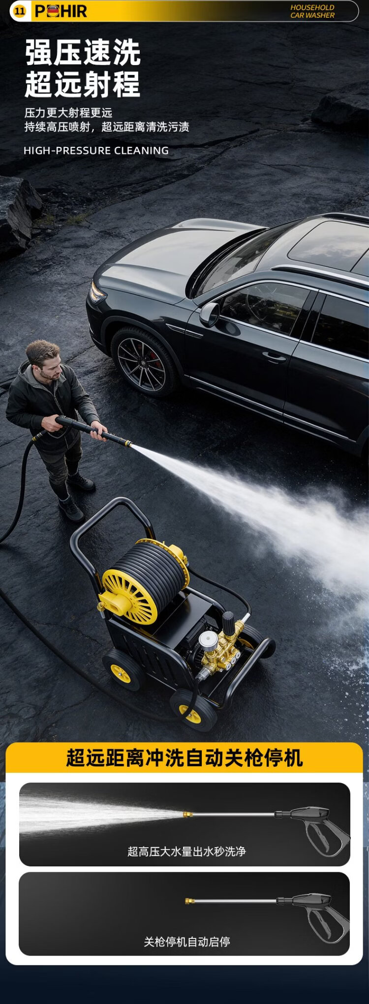 POHIR high-pressure car washing machine high-pressure water gun household 220v high-pressure cleaning machine high-power Spring Festival cleaning floor washing courtyard