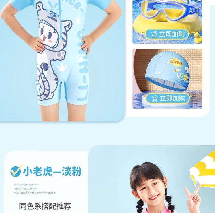 Li Ning swimsuit children's swimsuit boys and girls one-piece boxer swimming trunks surfing suit quick-drying hot spring swimsuit 3-6-12 years old