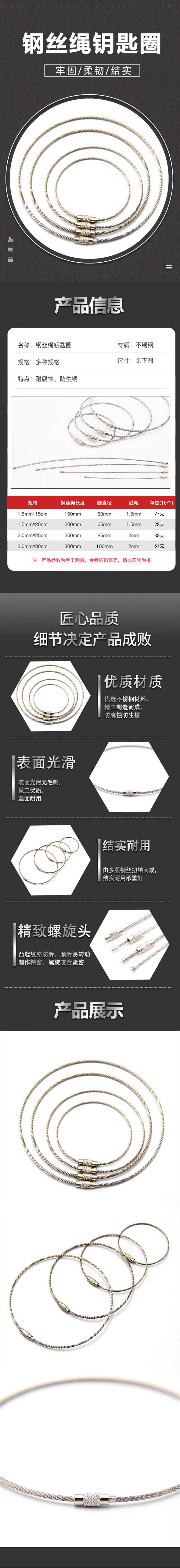 Jinguluo Today/next day delivery Wire lock buckle Wire rope key ring Stainless steel wire ring 2.0mm*30cm (10 pieces) KZS-1127