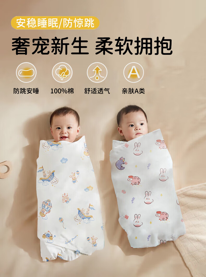 Kidsneed newborn baby wrap sheet summer thin delivery room pure cotton swaddling cloth wrap baby quilt anti-jump sleeping bag
