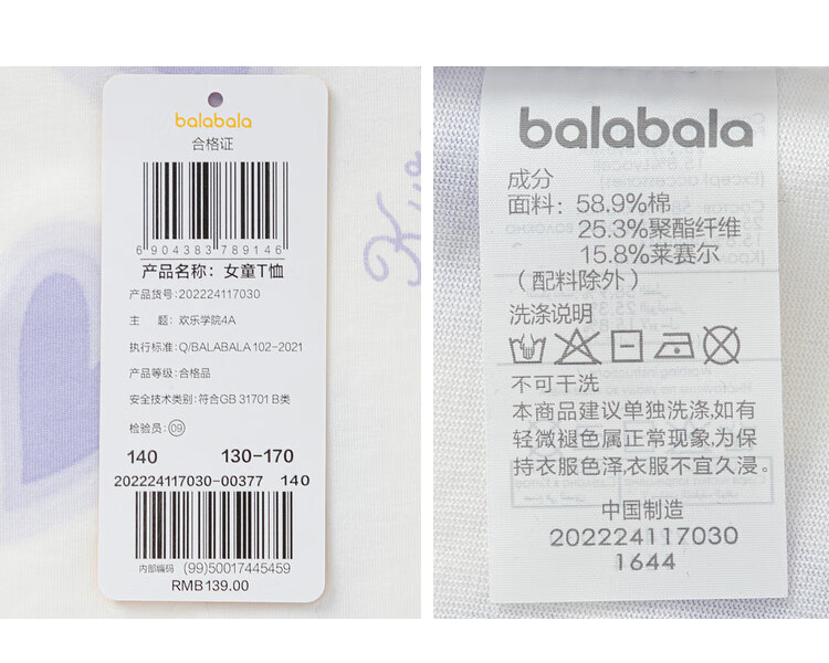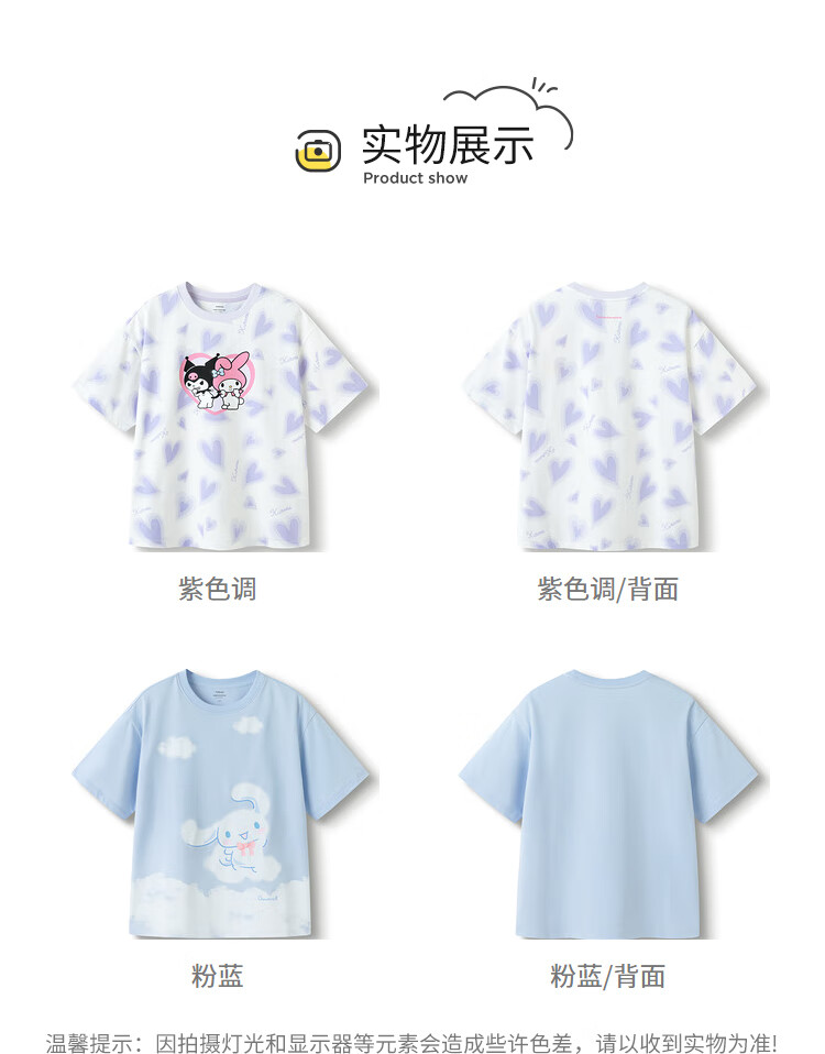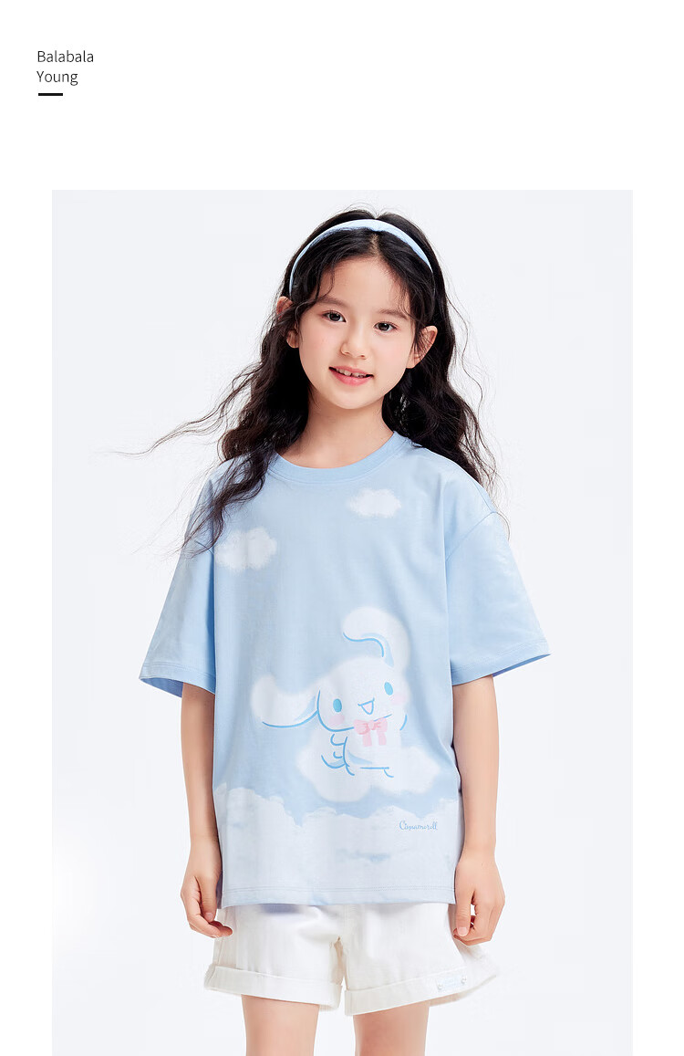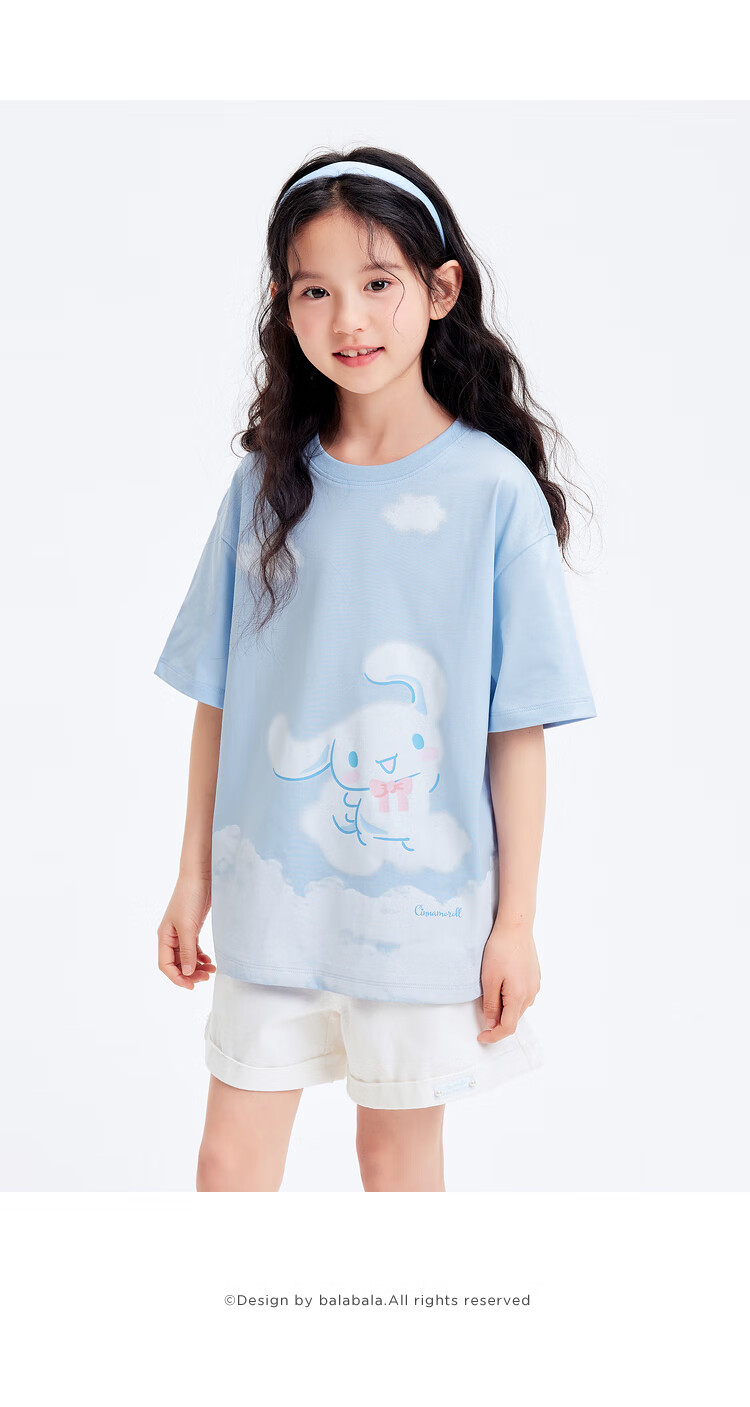 Balabala Children's Short Sleeve Girls T-Shirt 24 Summer Clothes for Middle and Older Children Sanrio IP 202224117030