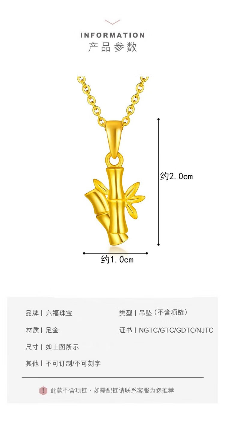 Lukfook Jewelry pure gold step by step bamboo gold pendant does not include necklace, price is about 1.09 grams