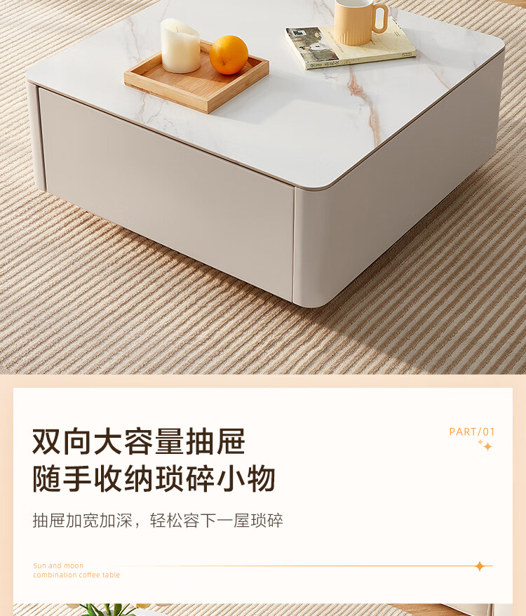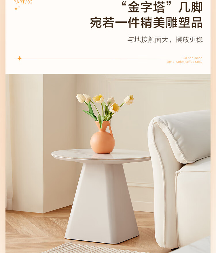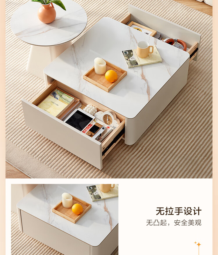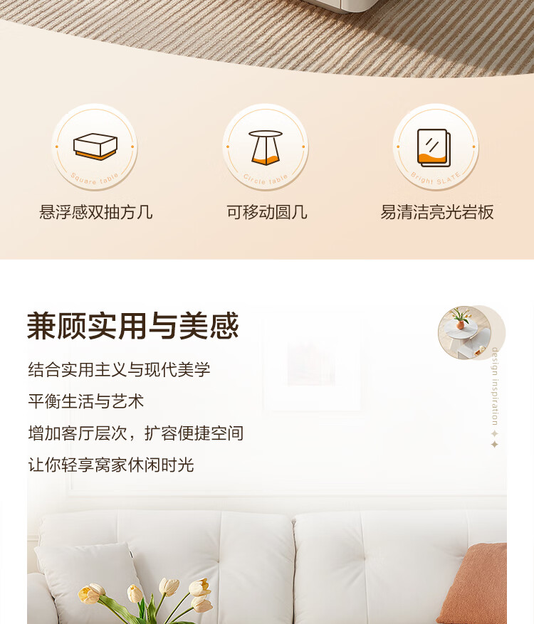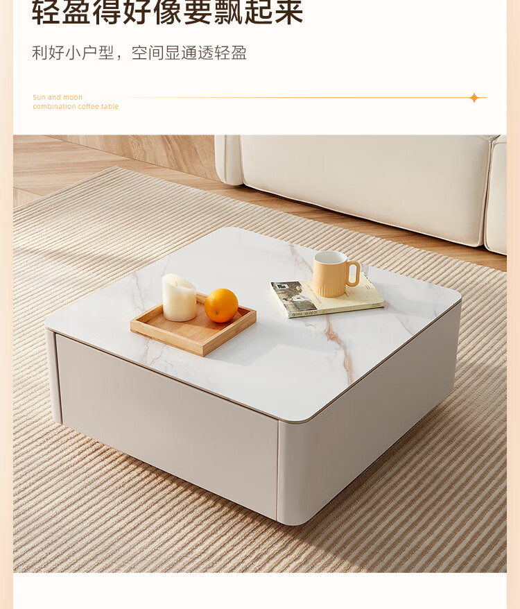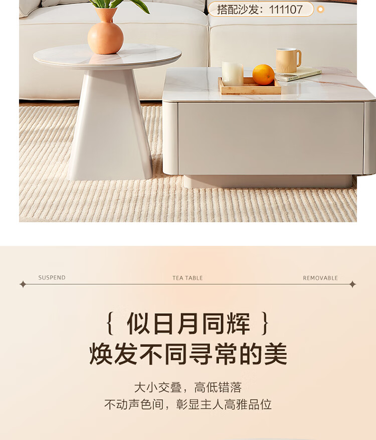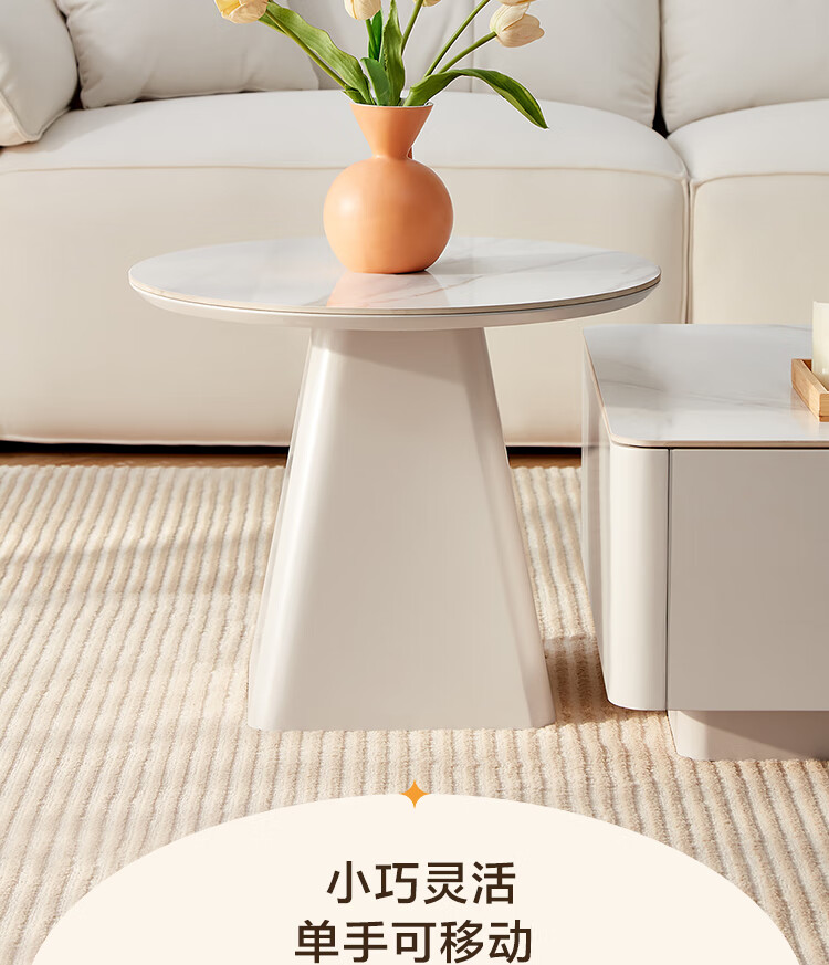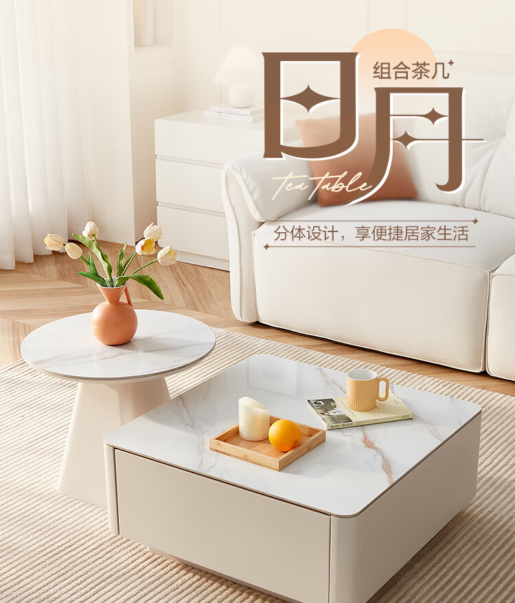 Quanyou Home Modern Simple Slate Round Small Apartment Simple Cream Style Square and Round Coffee Table Combination Living Room Home
