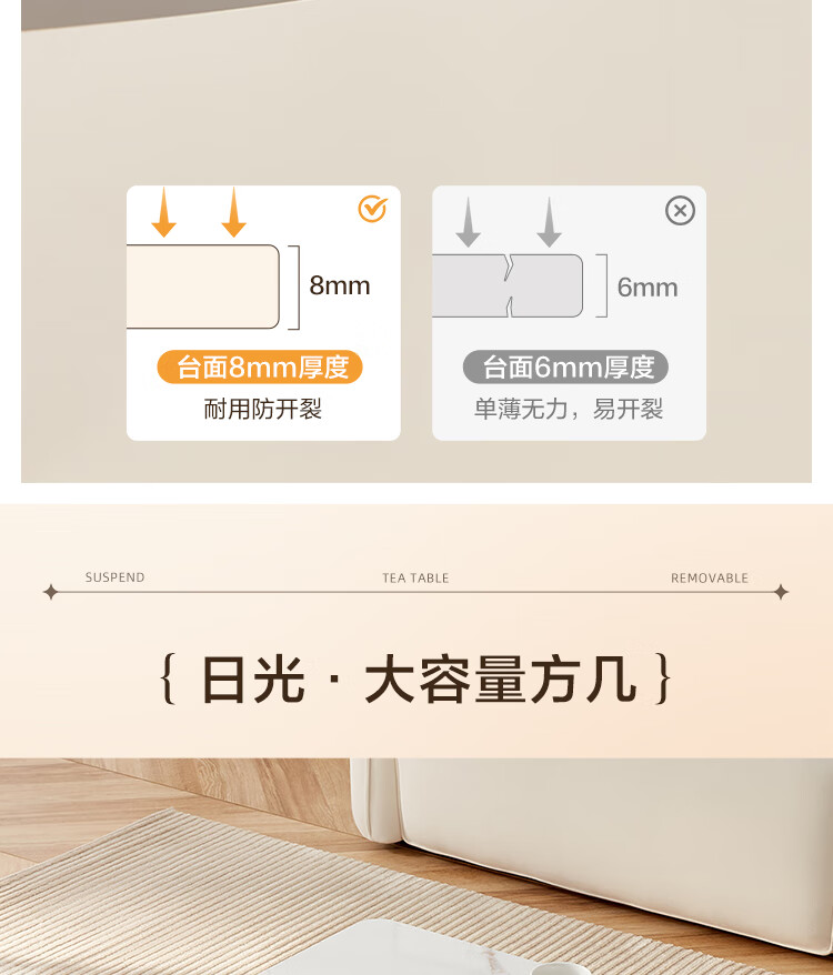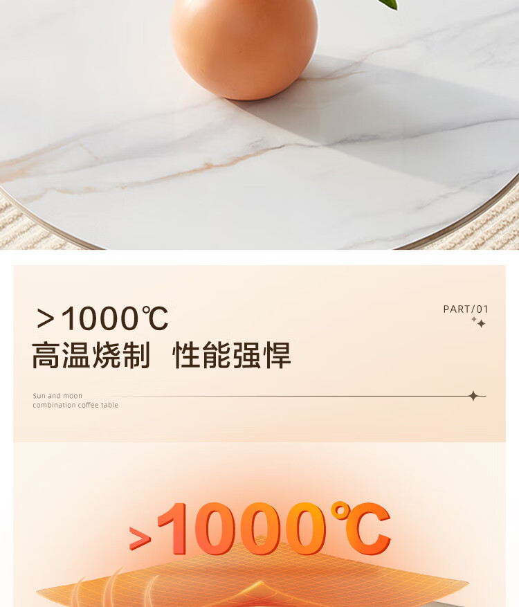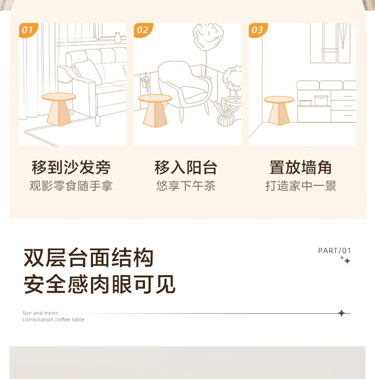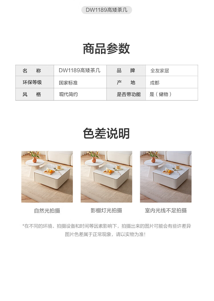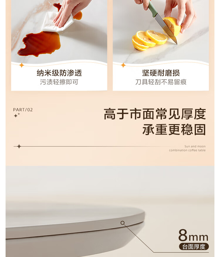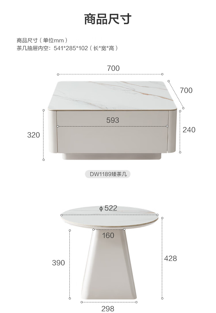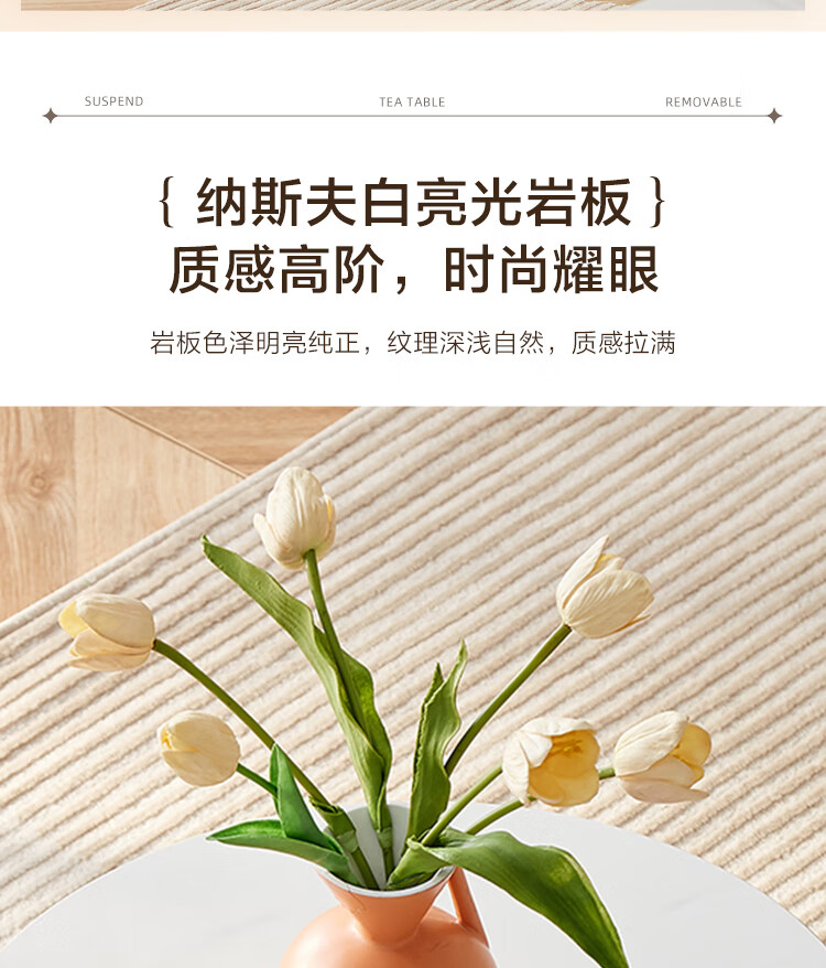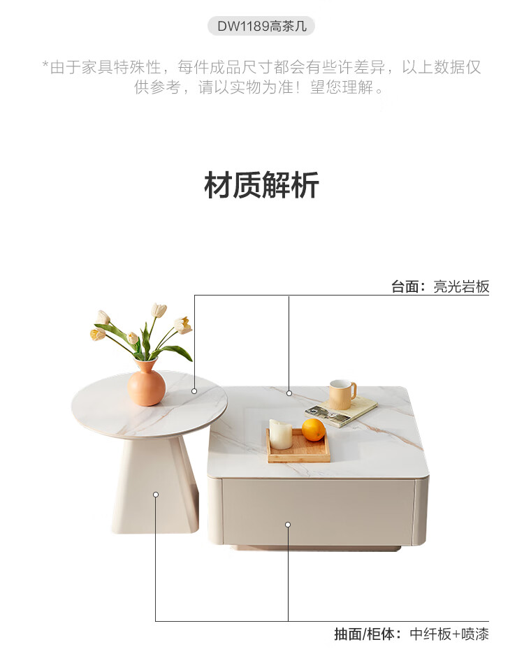 Quanyou Home Modern Simple Slate Round Small Apartment Simple Cream Style Square and Round Coffee Table Combination Living Room Home