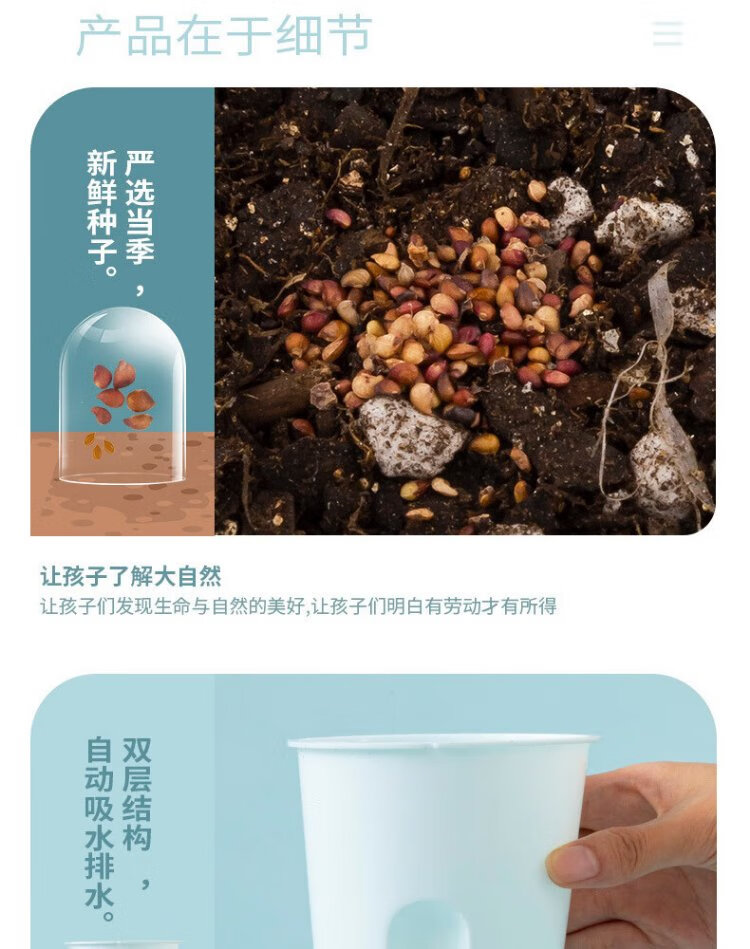 Devodo Mint Seeds DIY Children's Fun Planting Set Flowers and Green Plants Potted Plants and Vegetables Observation Planting Cup