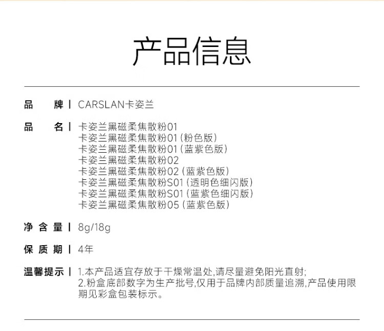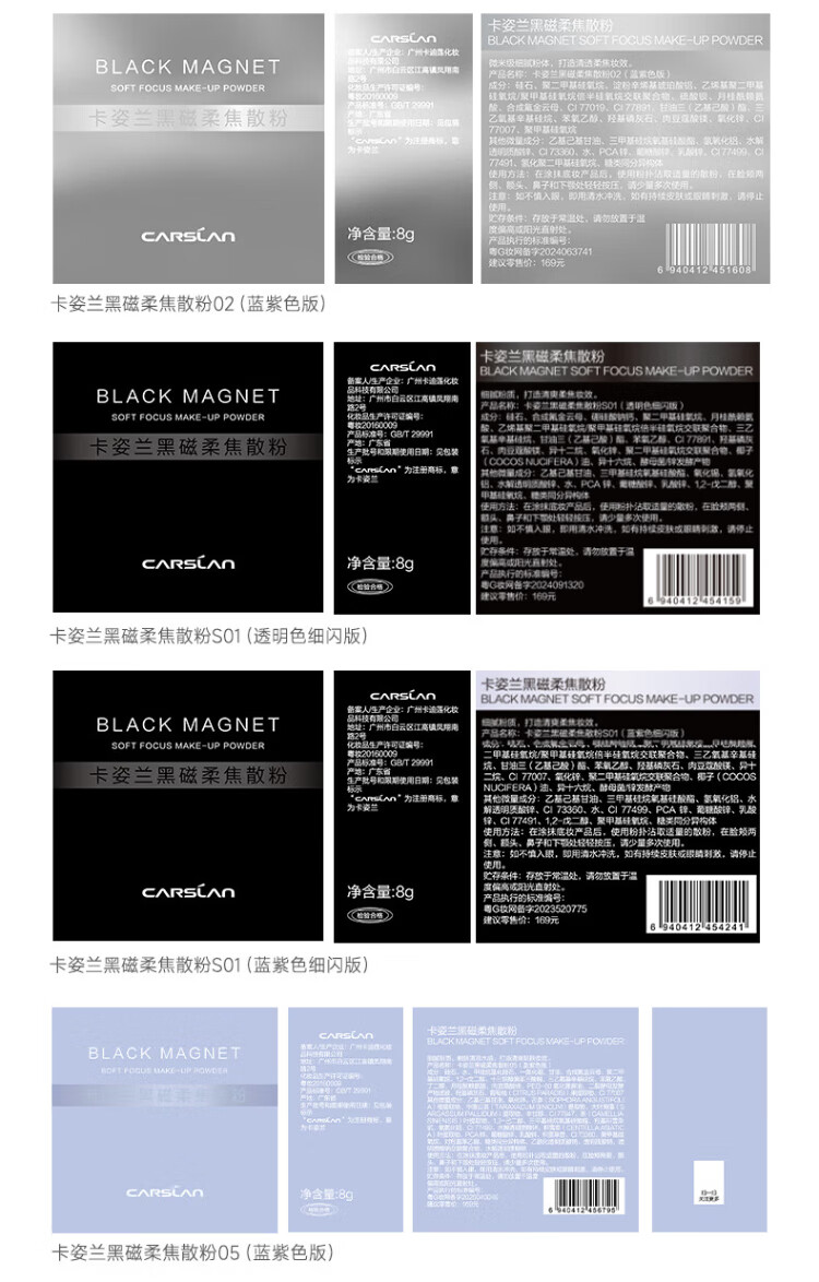 Carslan Black Magnetic Loose Powder 2.0 Blue Purple 8g Makeup Setting Powder Oil Controlling Concealer Long-lasting Sweat-proof No-Removal Birthday Gift