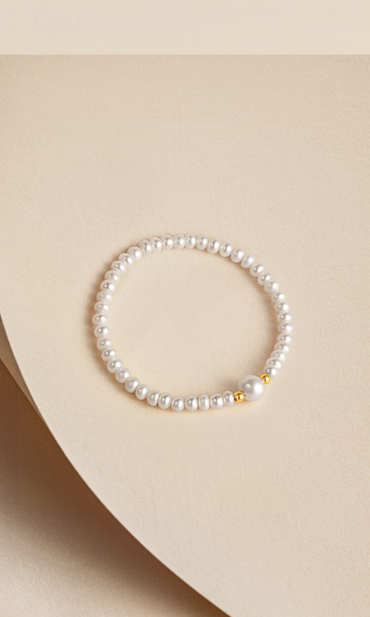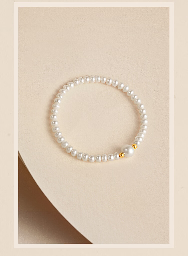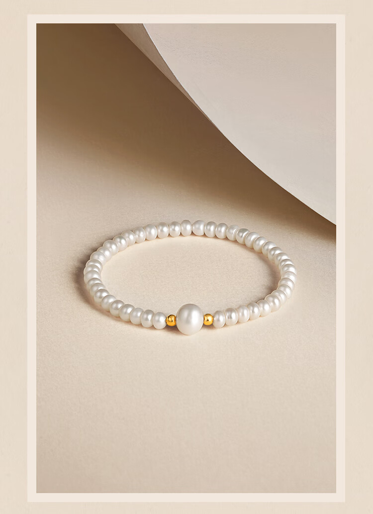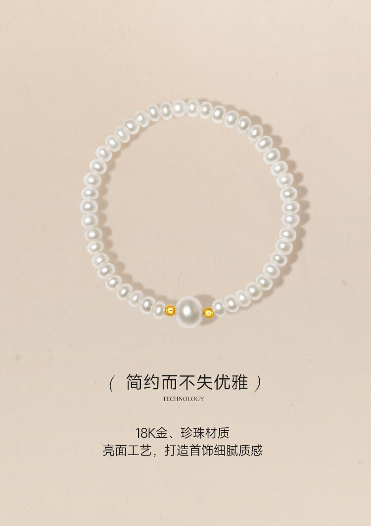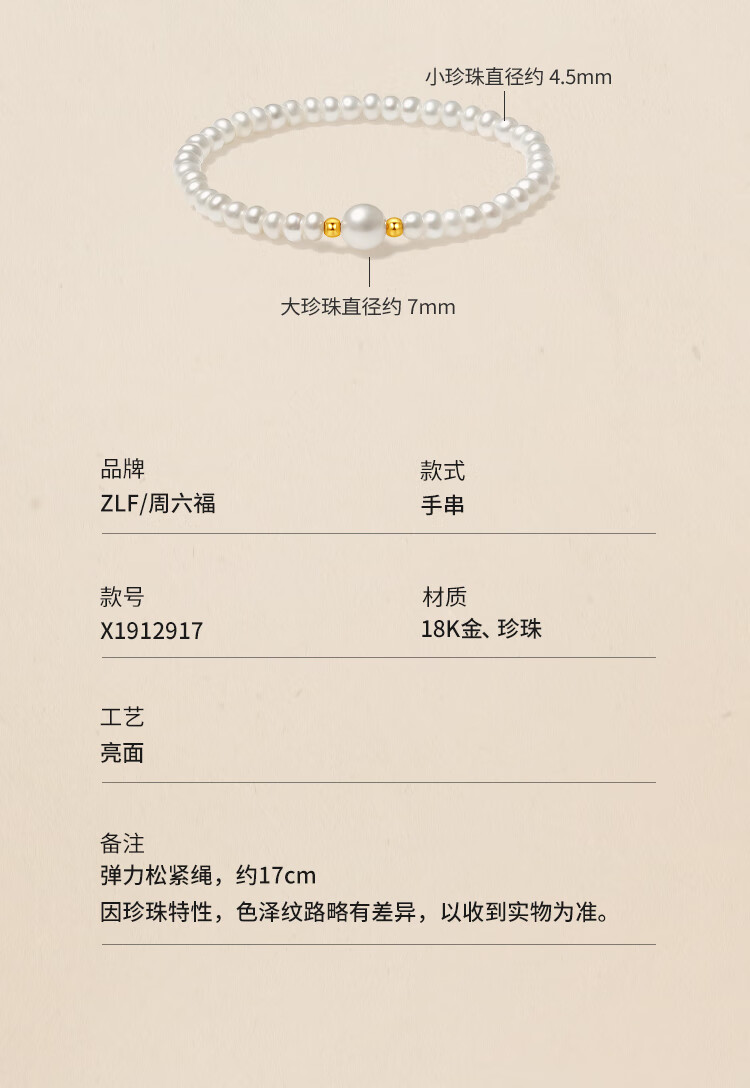 Saturday Lucky Yellow 18K Gold Pearl Bracelet Birthday Gift for Women X1912917 Chain Bun Beads About 4.5mm 17cm
