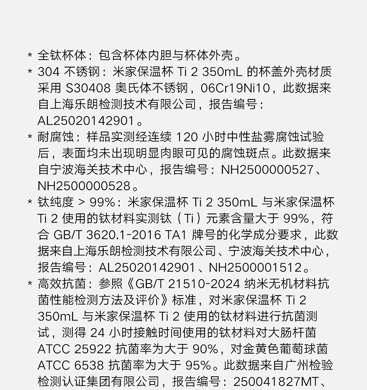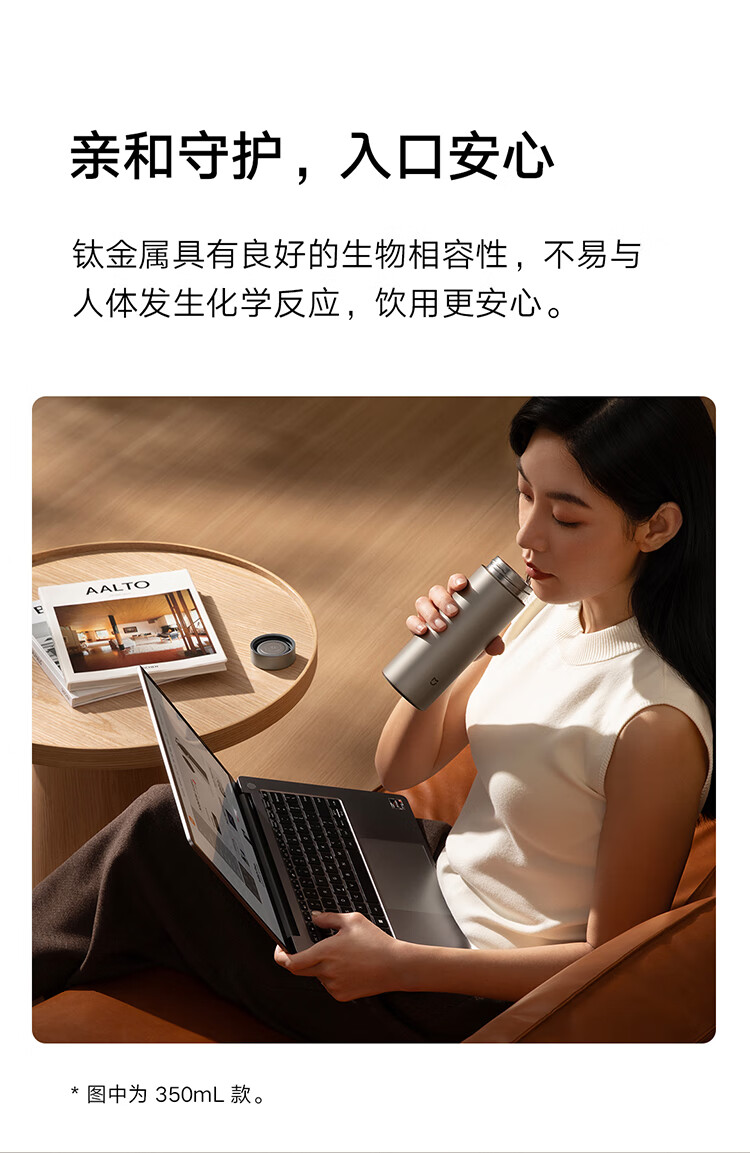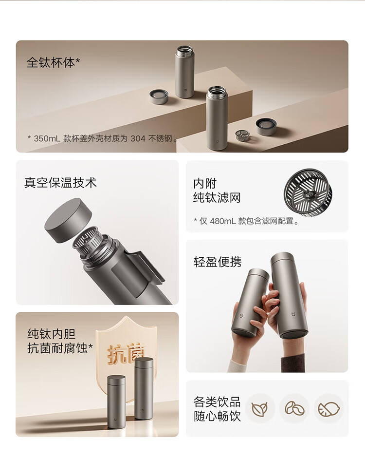 Mijia Titanium Thermos Cup Ti2 Tea Separator Cup Pure Titanium Large Capacity Cup 480ml Men's and Women's Water Cup