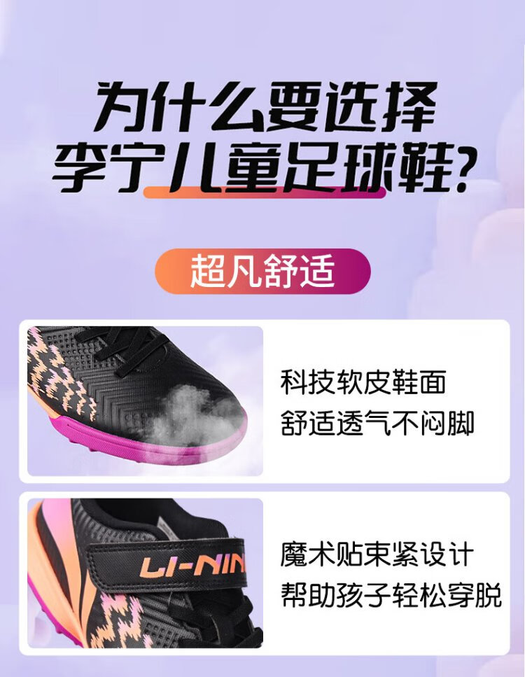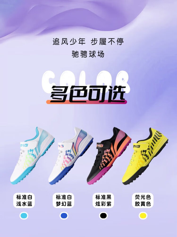 Li Ning football shoes children's tf broken nails men and women 6-12 years old youth professional training competition shoes summer breathable nails 34