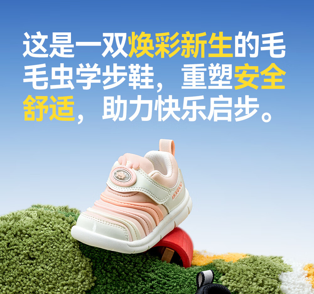 Babudou Toddler Shoes Autumn Boy Caterpillar Anti-slip Breathable Children's Functional Shoes Soft Sole Boys and Girls Shell Powder 23 Sizes