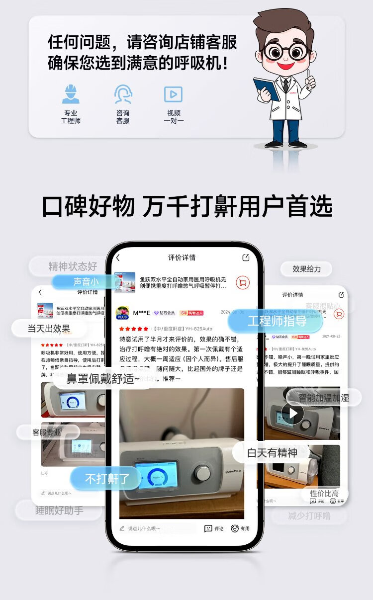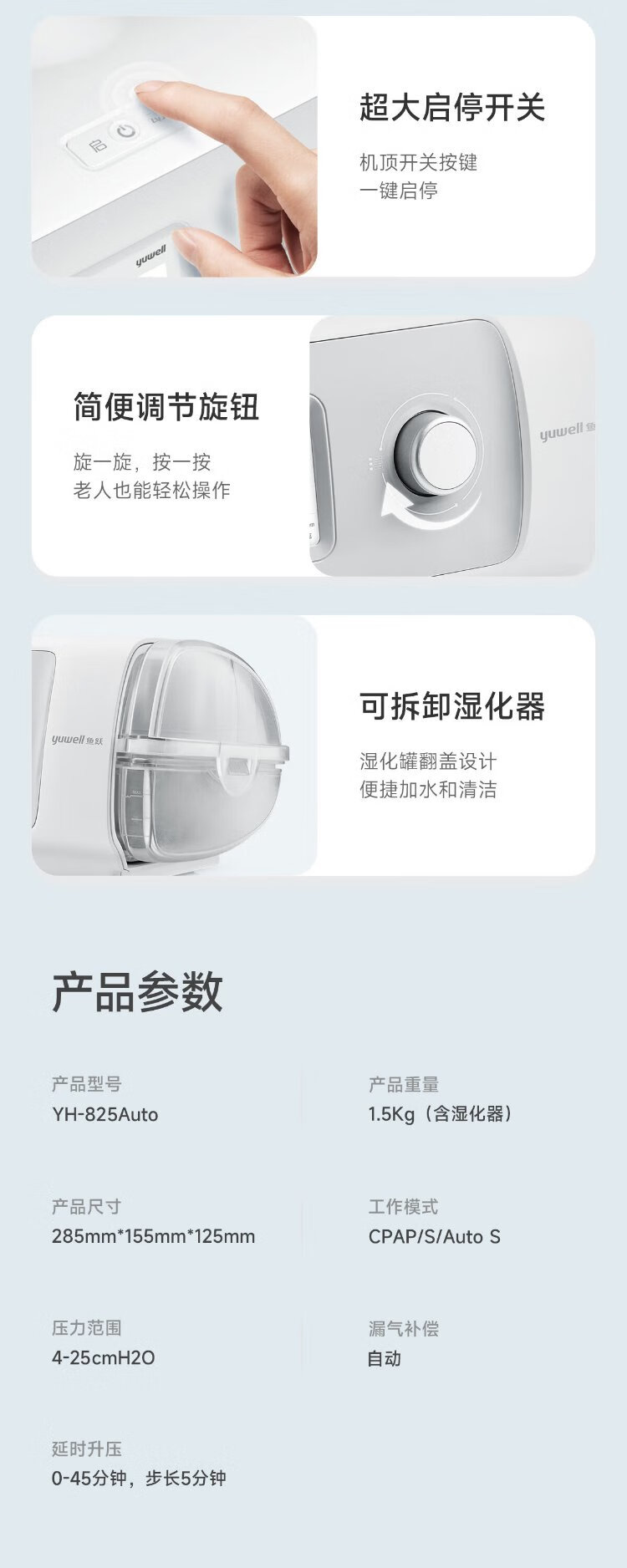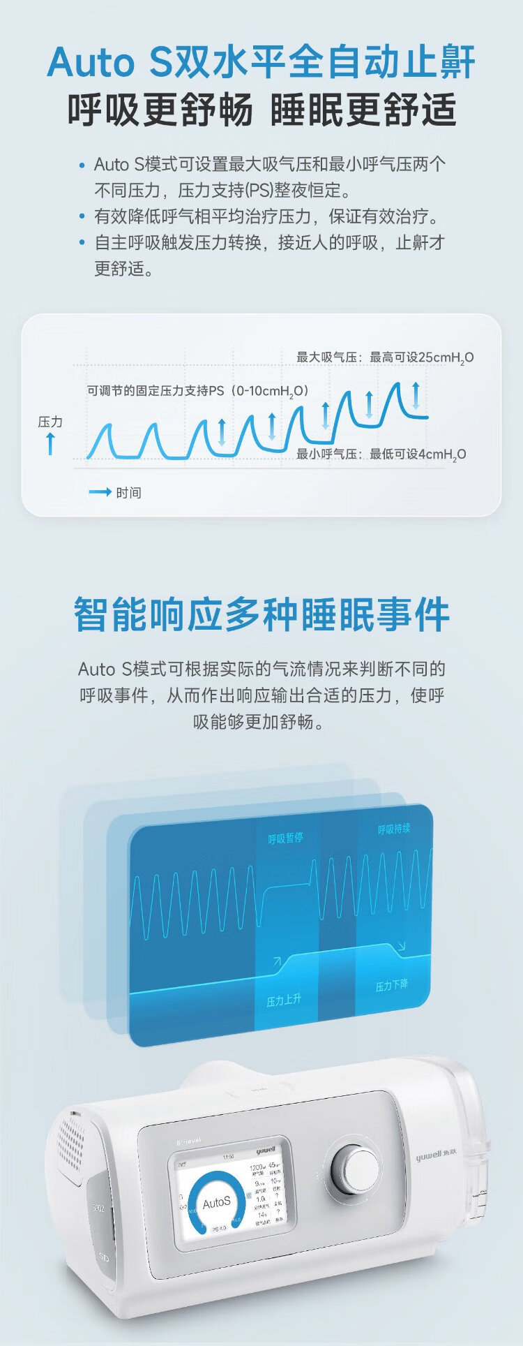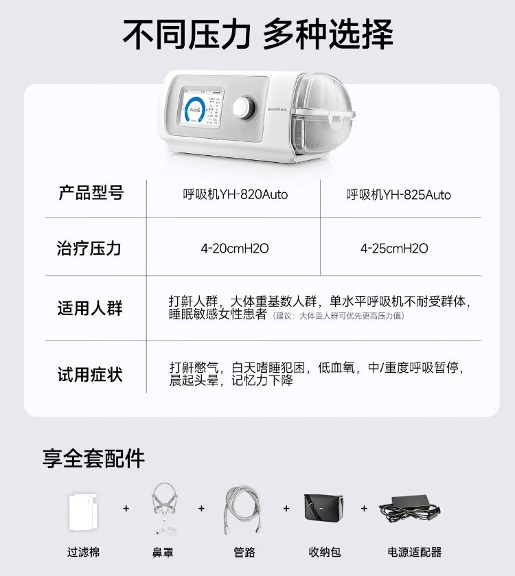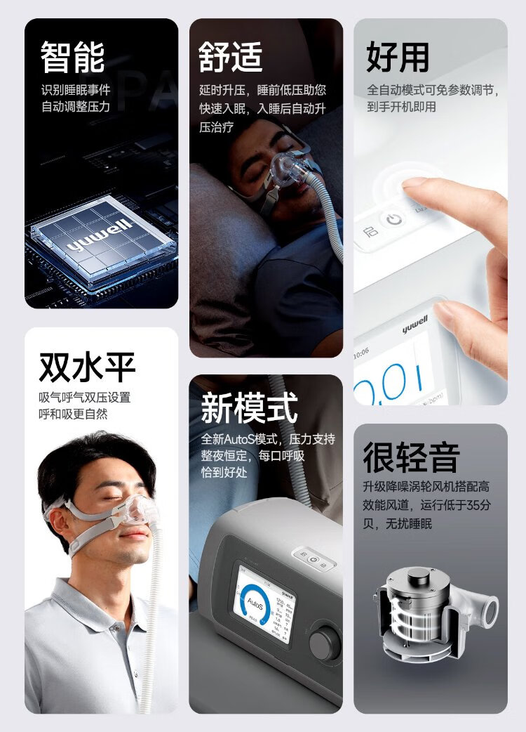 Yuyue 825Auto máquina de apnea del sueño totalmente automática de dos niveles para roncar, apnea médica casera para detener los ronquidos