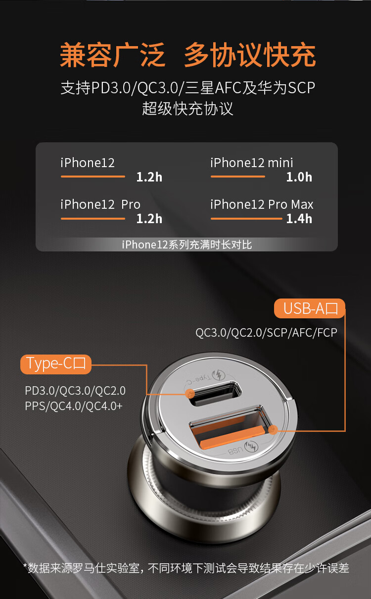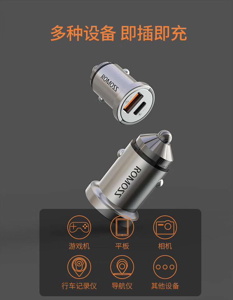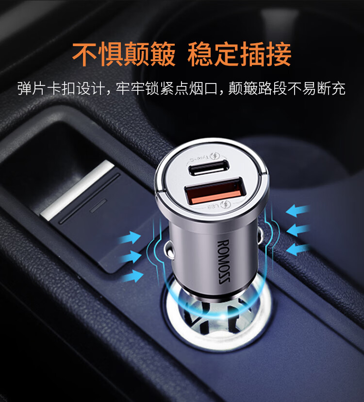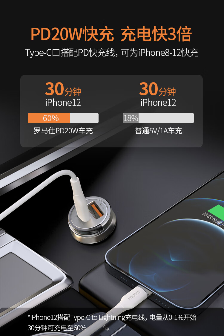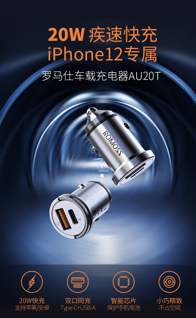 Romans 20W charger car cigarette lighter car charger super fast charging one-to-two/2-in-1 suitable for Apple 16/15/14 Android fast charging head car charging converter