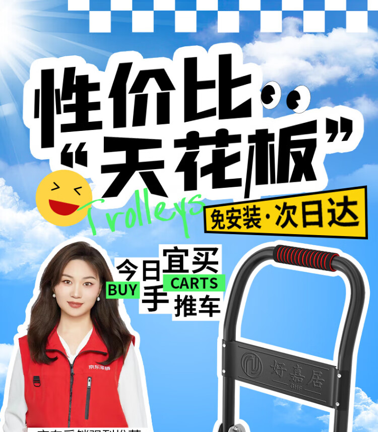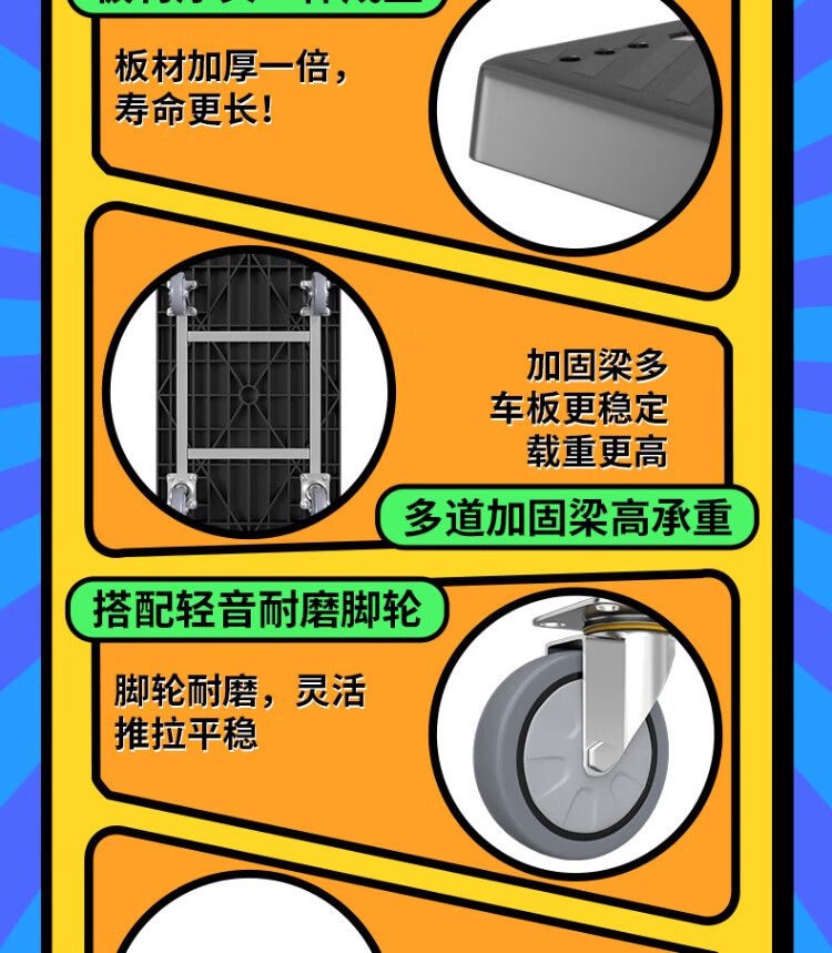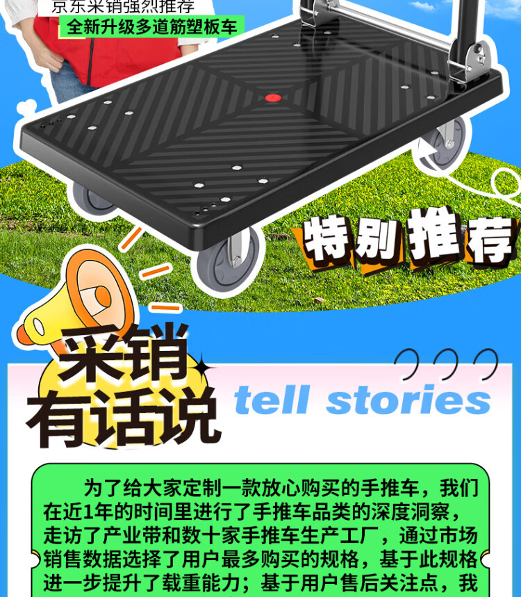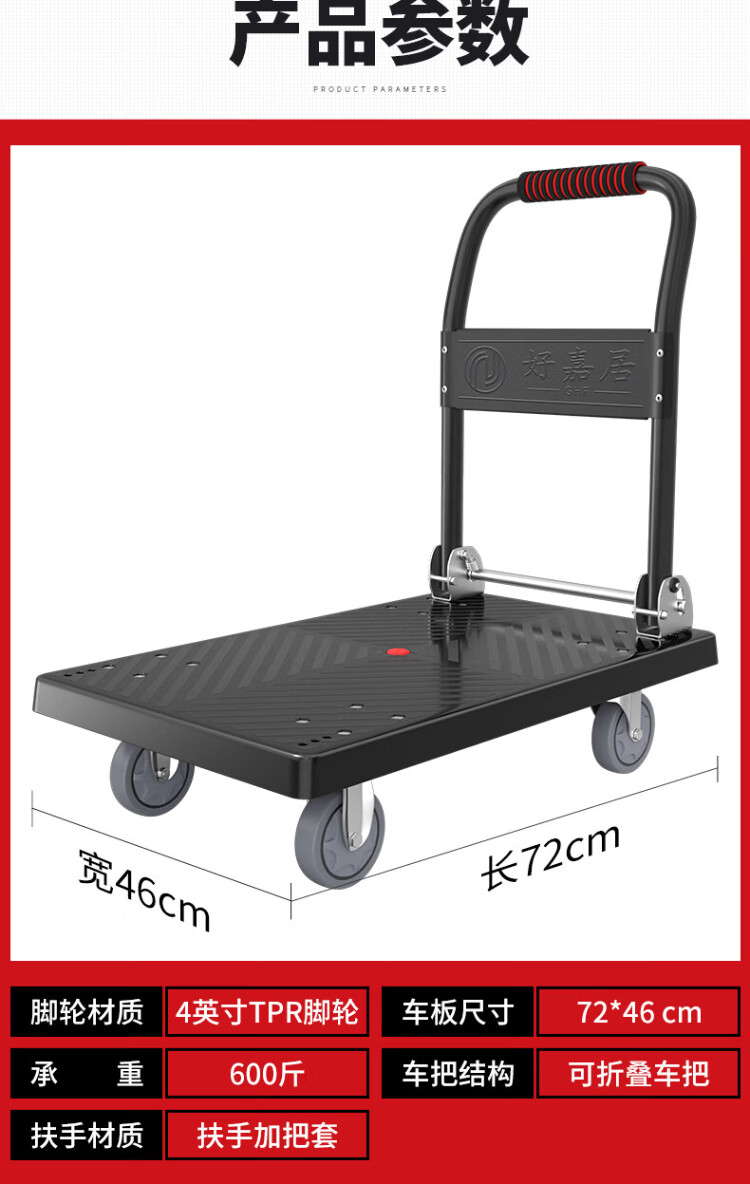 Складная плоская тележка Haojiaju, четыре стальные трубы, грузоподъемность 600Jin Jin равна 0,5 кг, 4-дюймовое светлое колесо 72 * 46 см, ручное управление и погрузочно-разгрузочные работы, небольшая фабрика по декорированию прицепов.