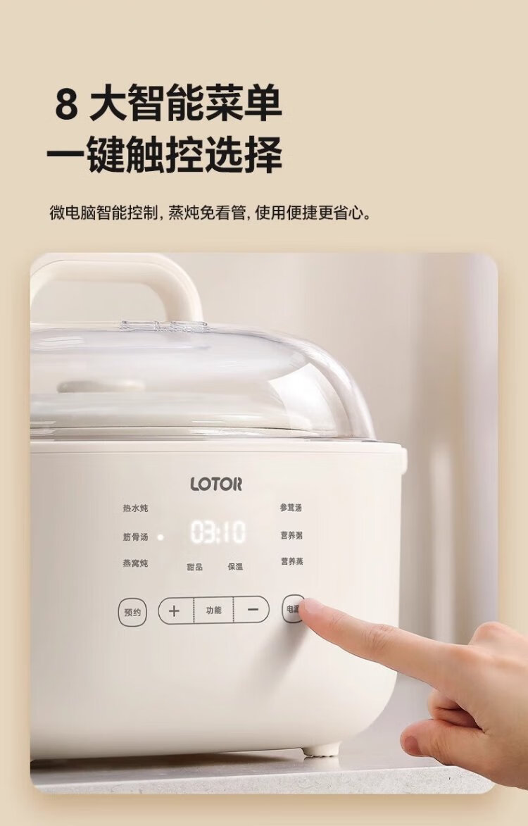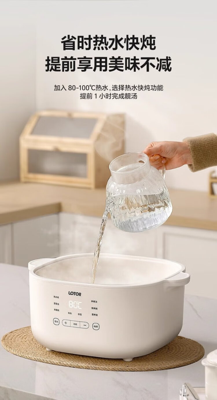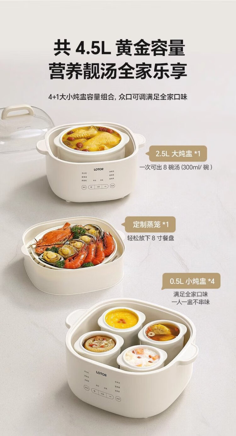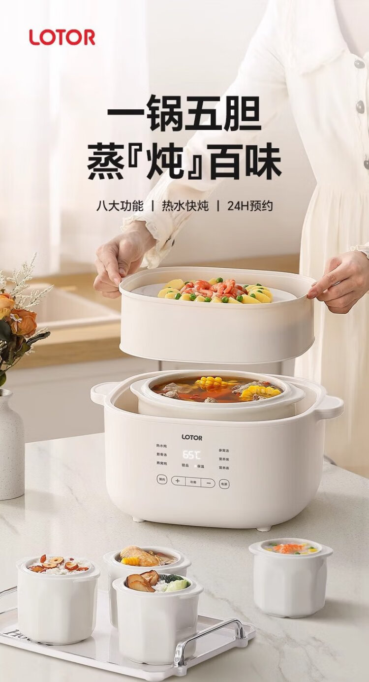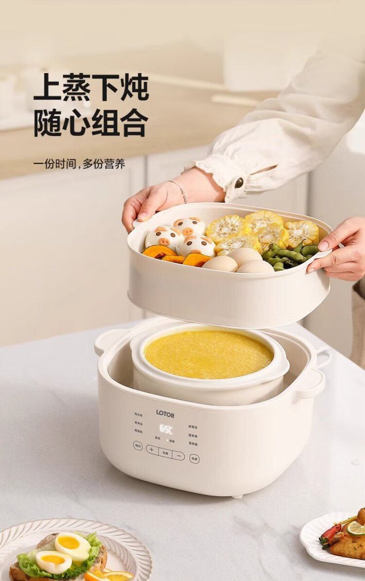 LOTOR Leda white electric stew pot multi-functional pot electric cooking pot soup pot household large-capacity water-proof stew pot baby food supplement electric steamer porridge pot D31 basic model