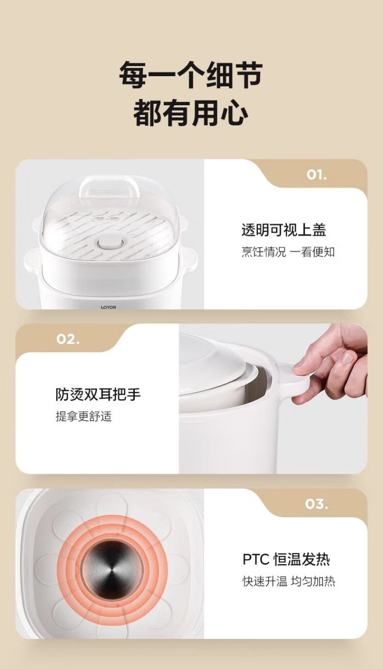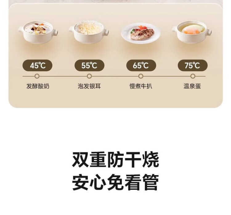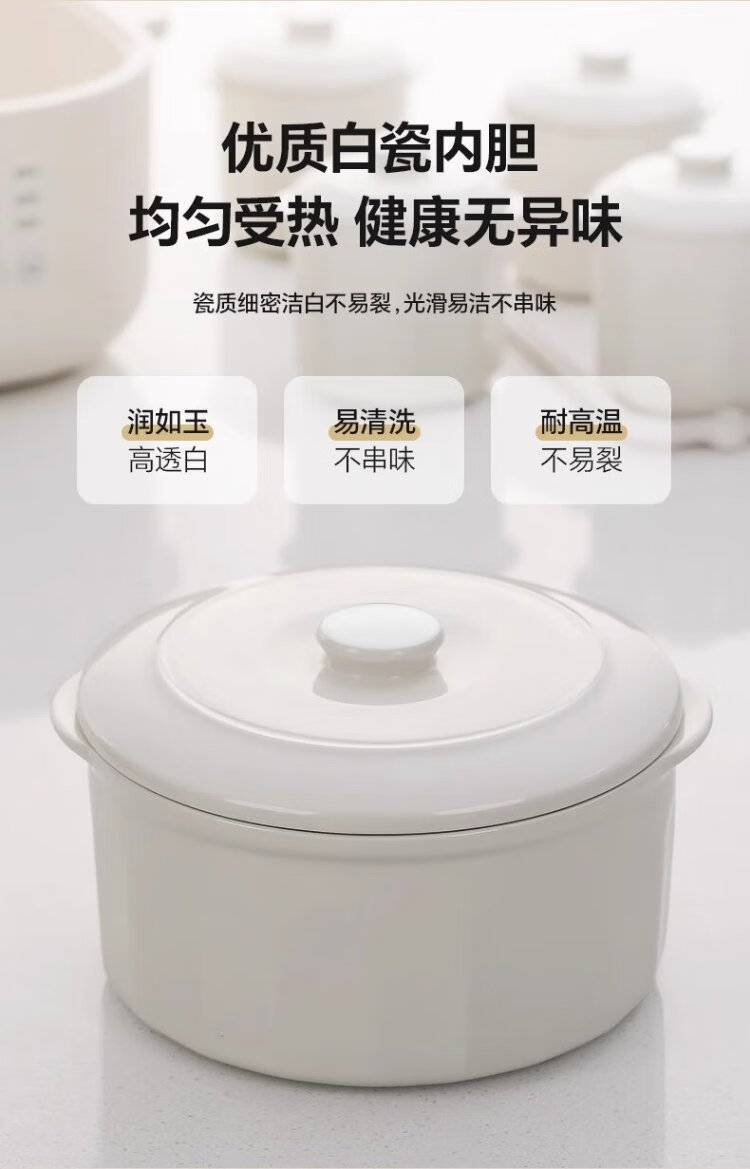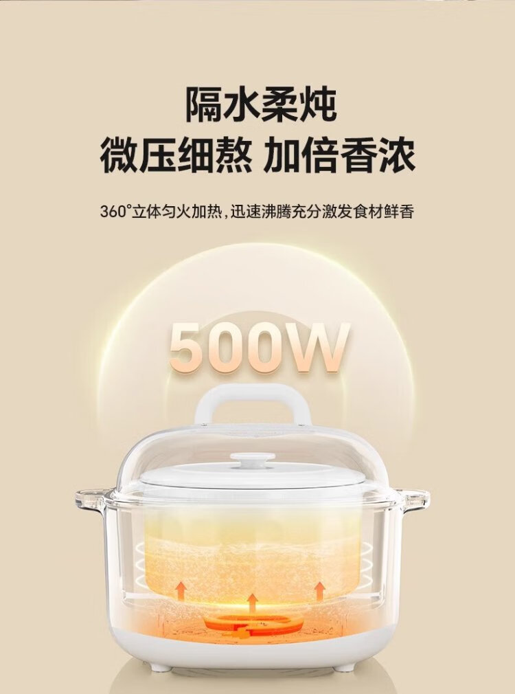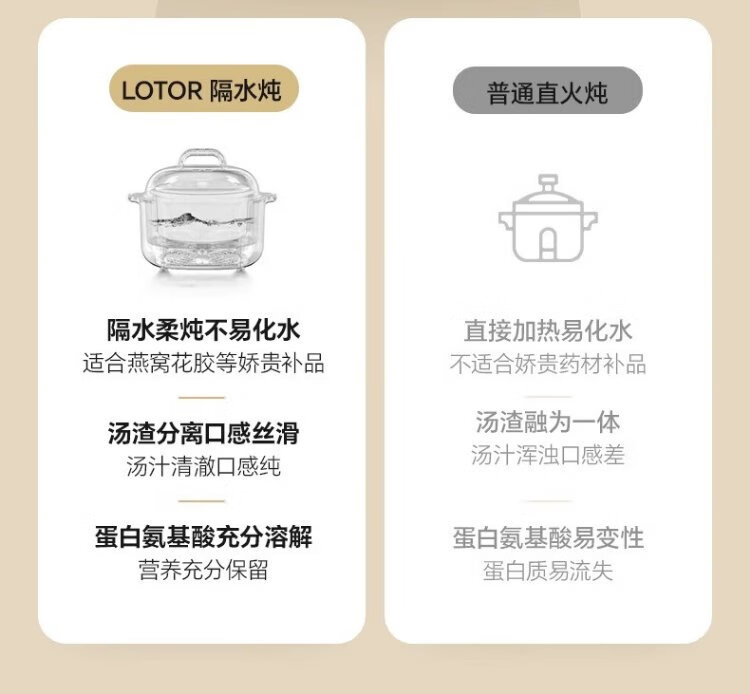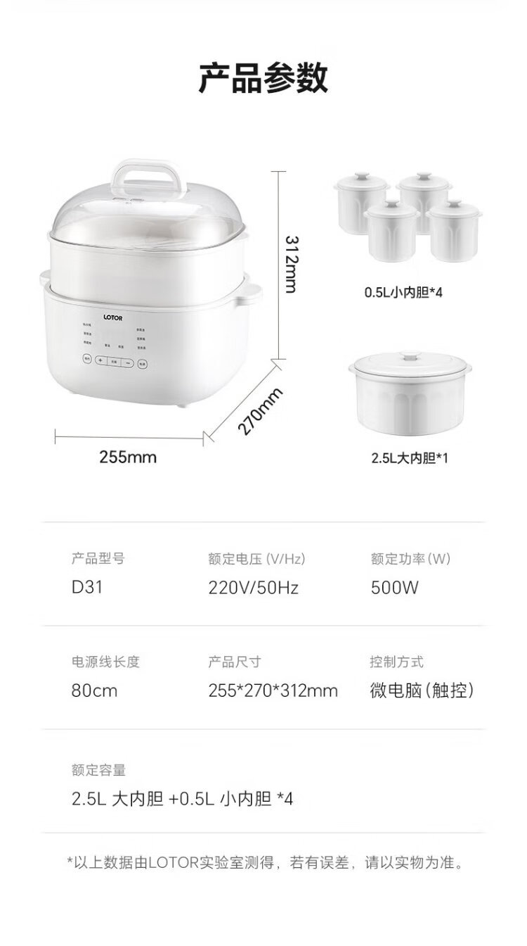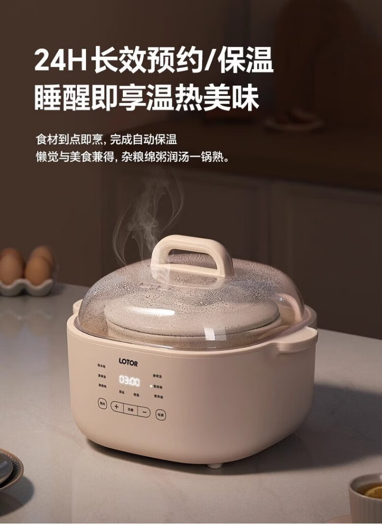 LOTOR Leda white electric stew pot multi-functional pot electric cooking pot soup pot household large-capacity water-proof stew pot baby food supplement electric steamer porridge pot D31 basic model