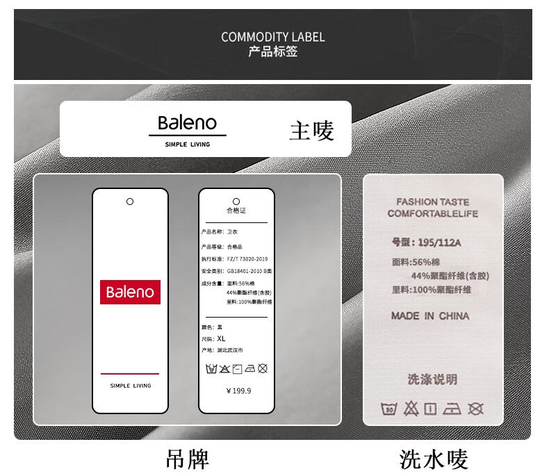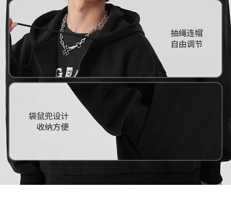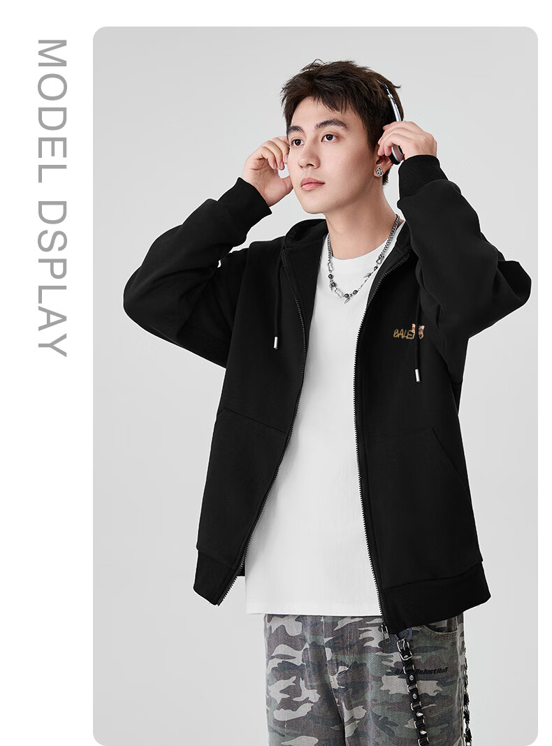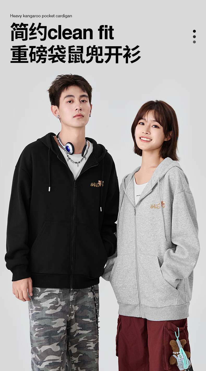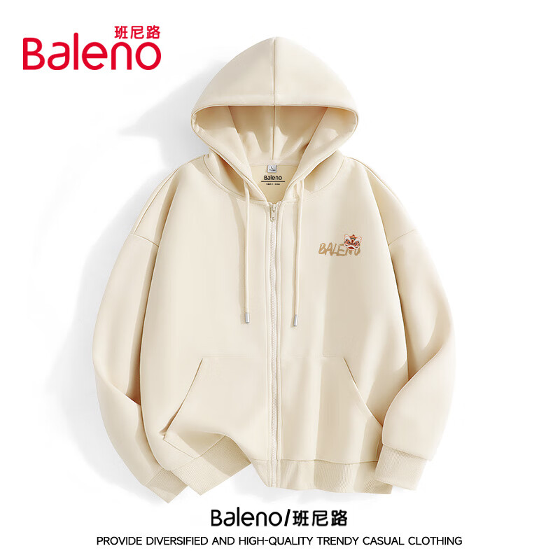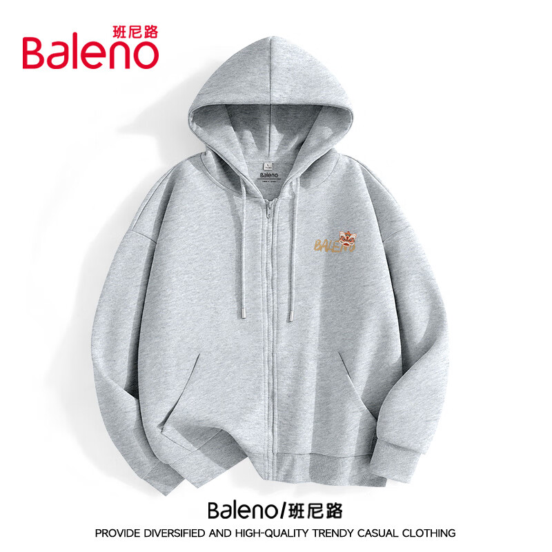 Baleno sweatshirt men's spring and autumn trendy creative cardigan zipper hooded top youth casual sports loose hoodie