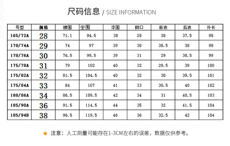 USA(inch) 28-30 30-32 32-34 34-38 38-42