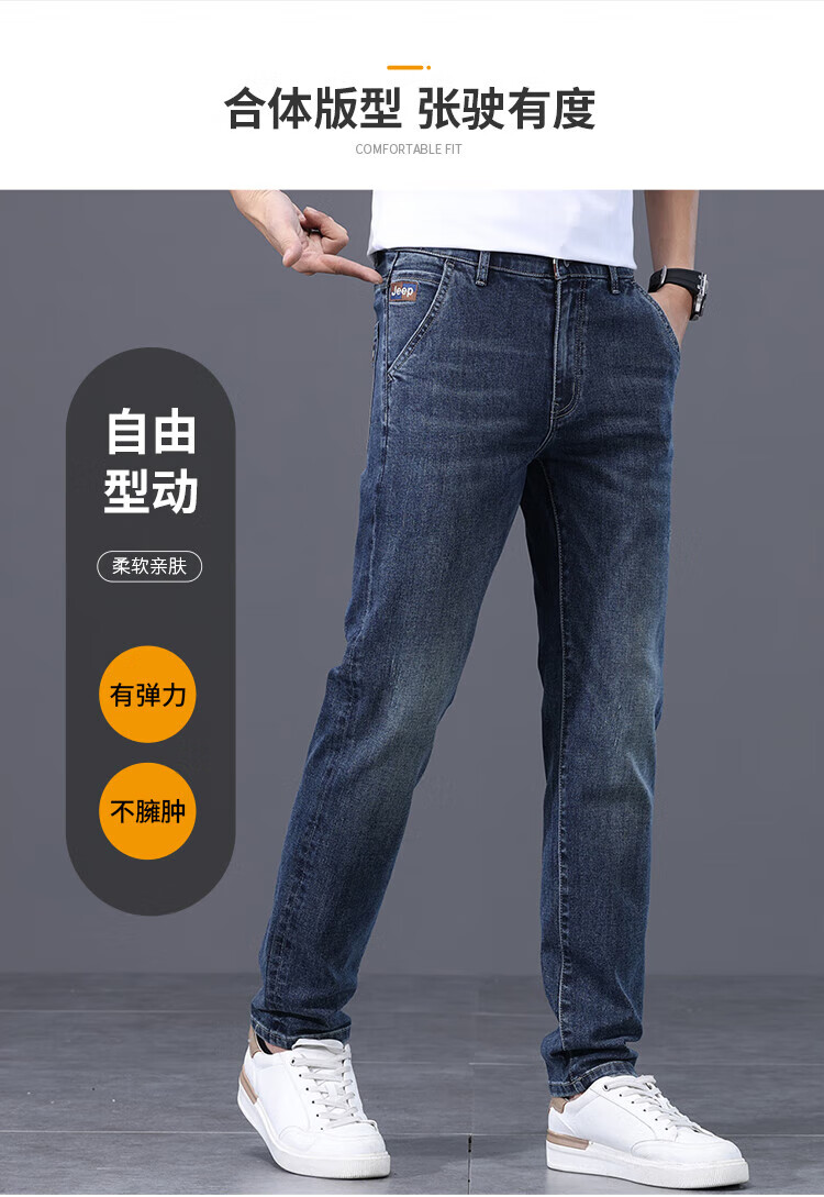JEEP Jeep jeans men's autumn and winter loose straight pants men's versatile casual pants men's pants blue 33