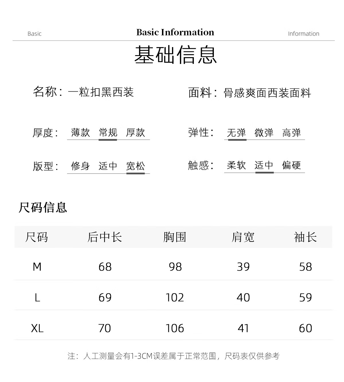 China (cm) 160-165/84-86 165-170 / 88-90 167-172 / 92-96 168-173 / 98-102 170-176 / 106-110