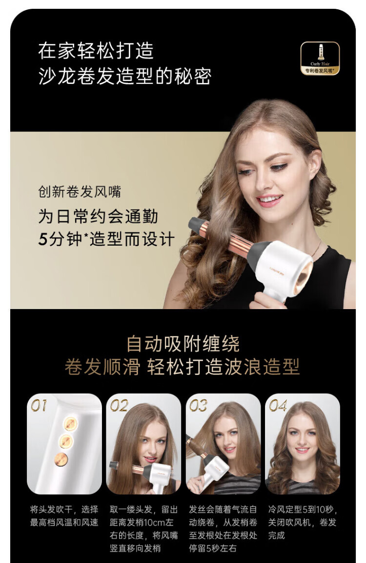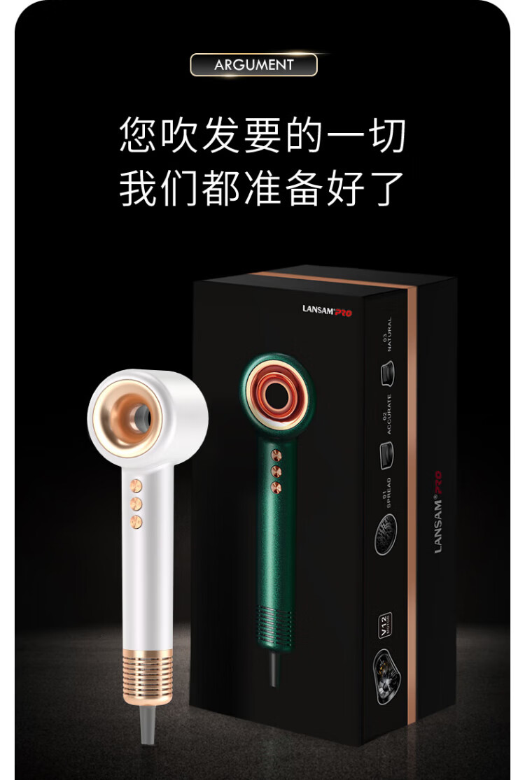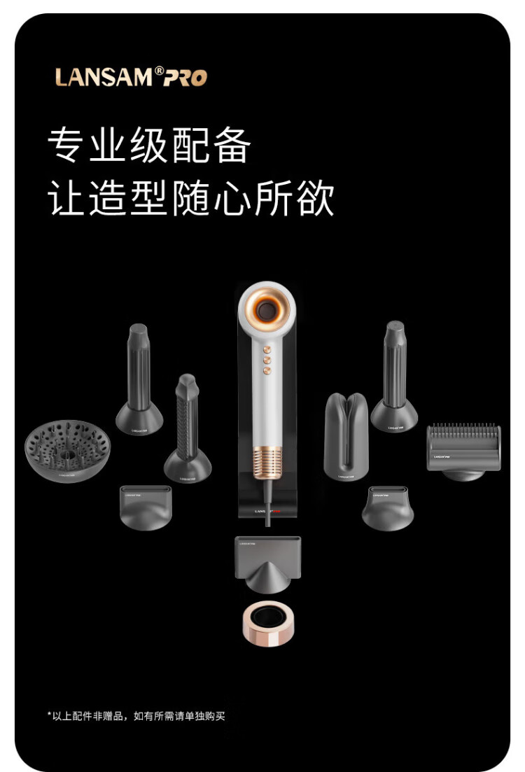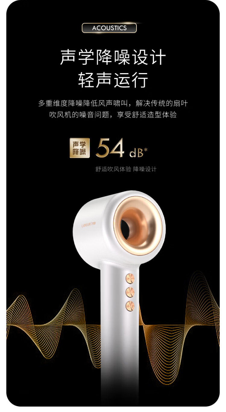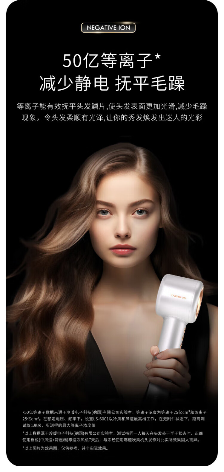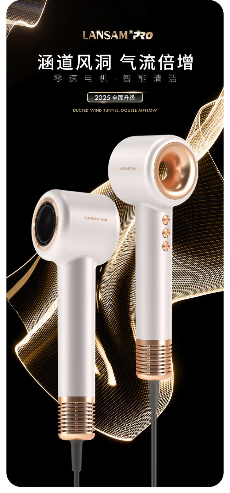 LANSAM zero-speed hair dryer household plasma hair care high-speed high-power high wind does not damage hair negative ion hair dryer gift national subsidy youth version-silk white