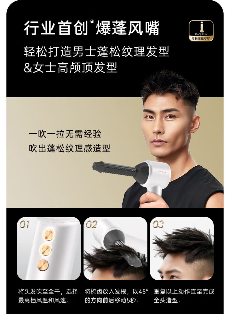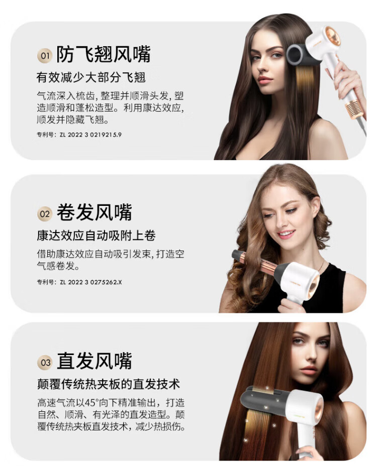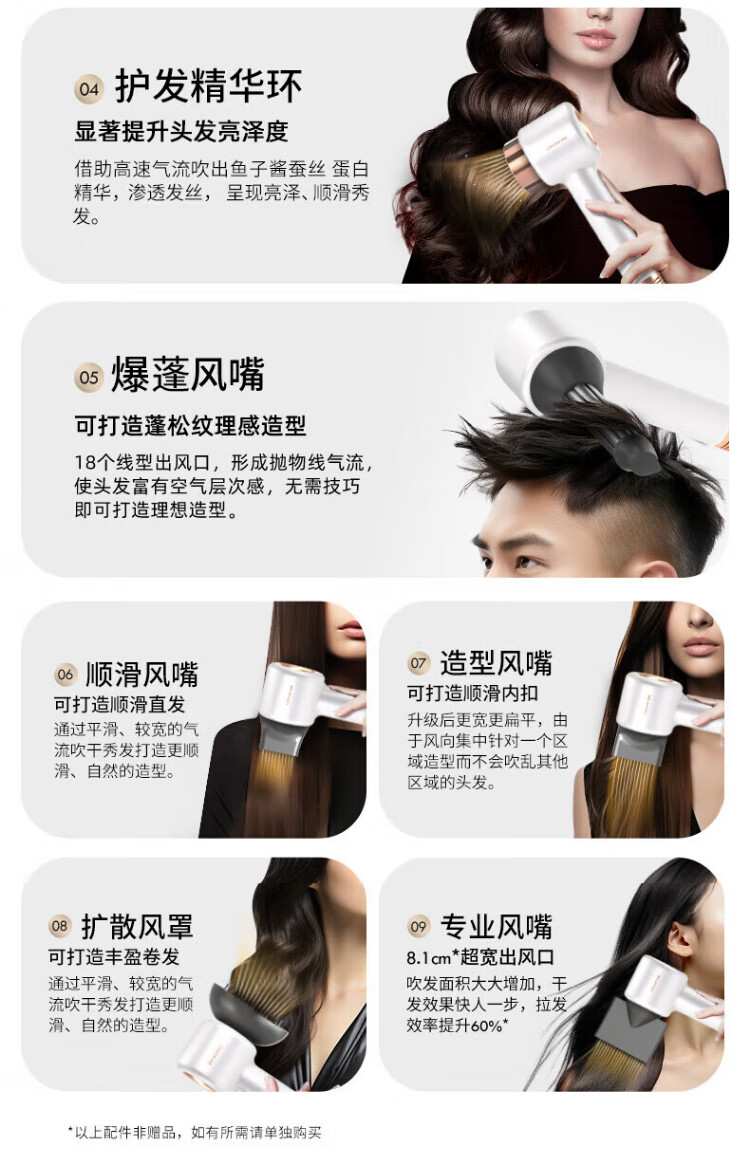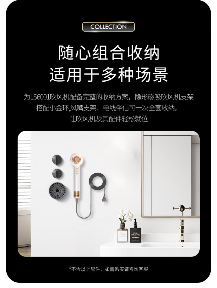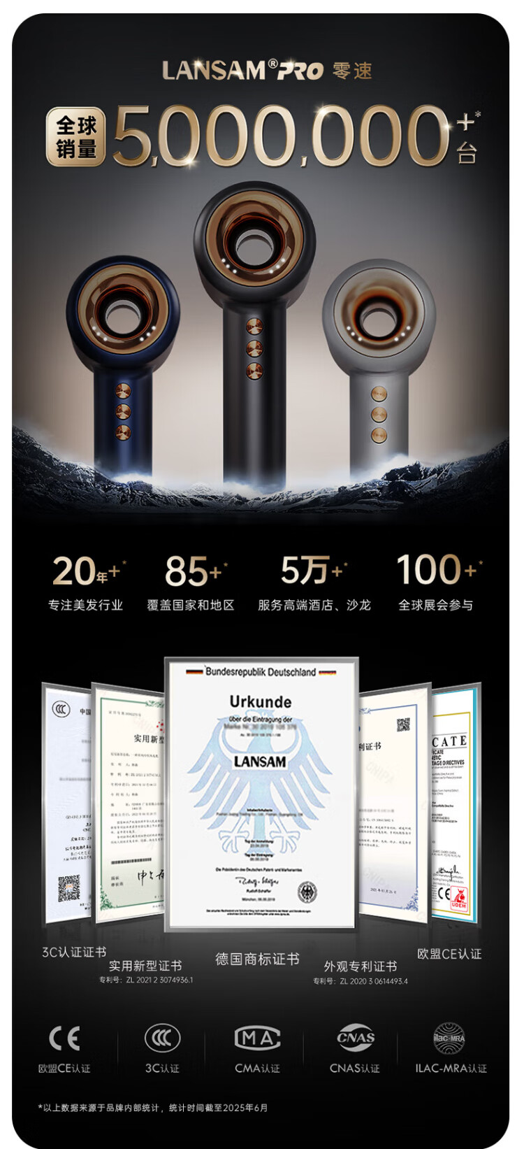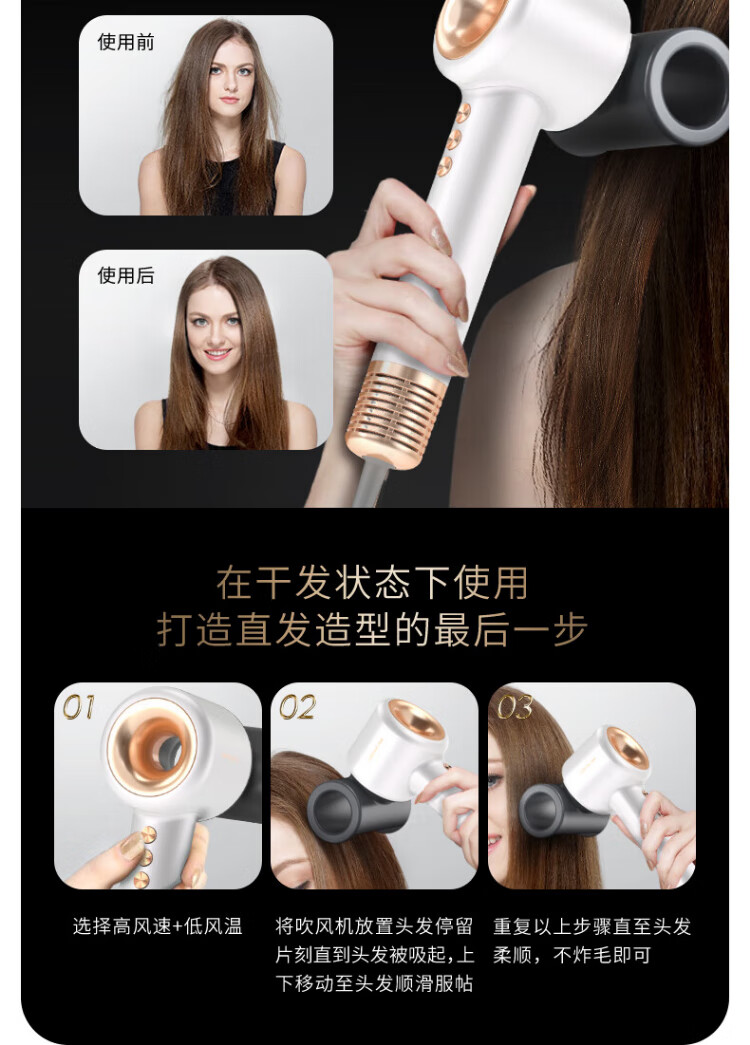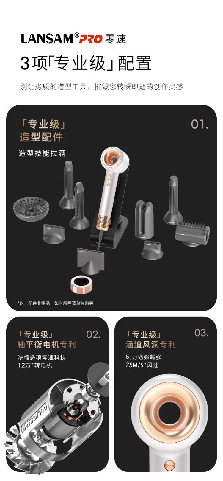 LANSAM zero-speed hair dryer household plasma hair care high-speed high-power high wind does not damage hair negative ion hair dryer gift national subsidy youth version-silk white
