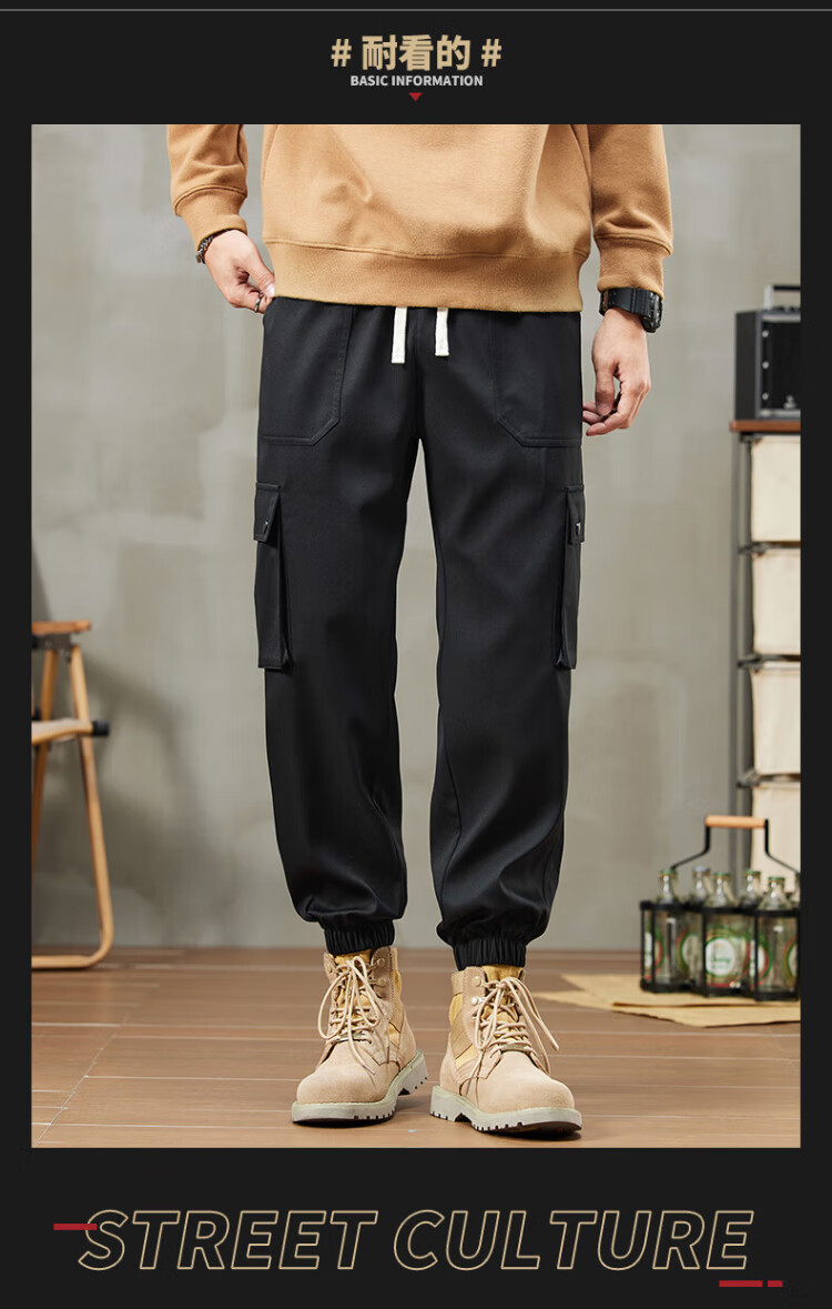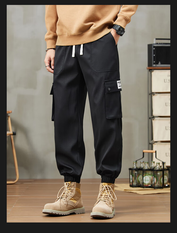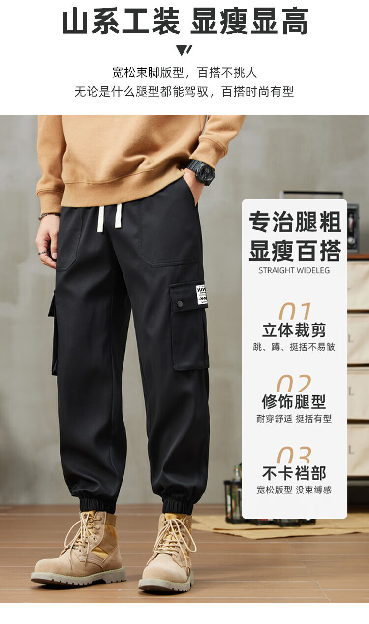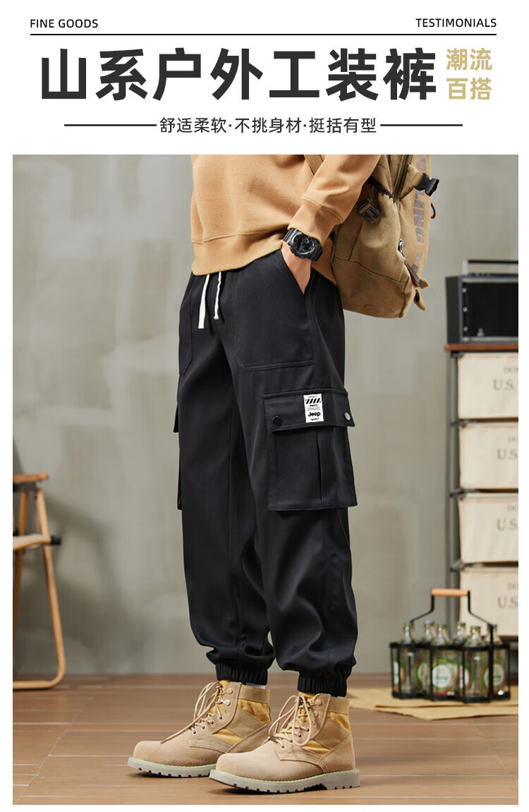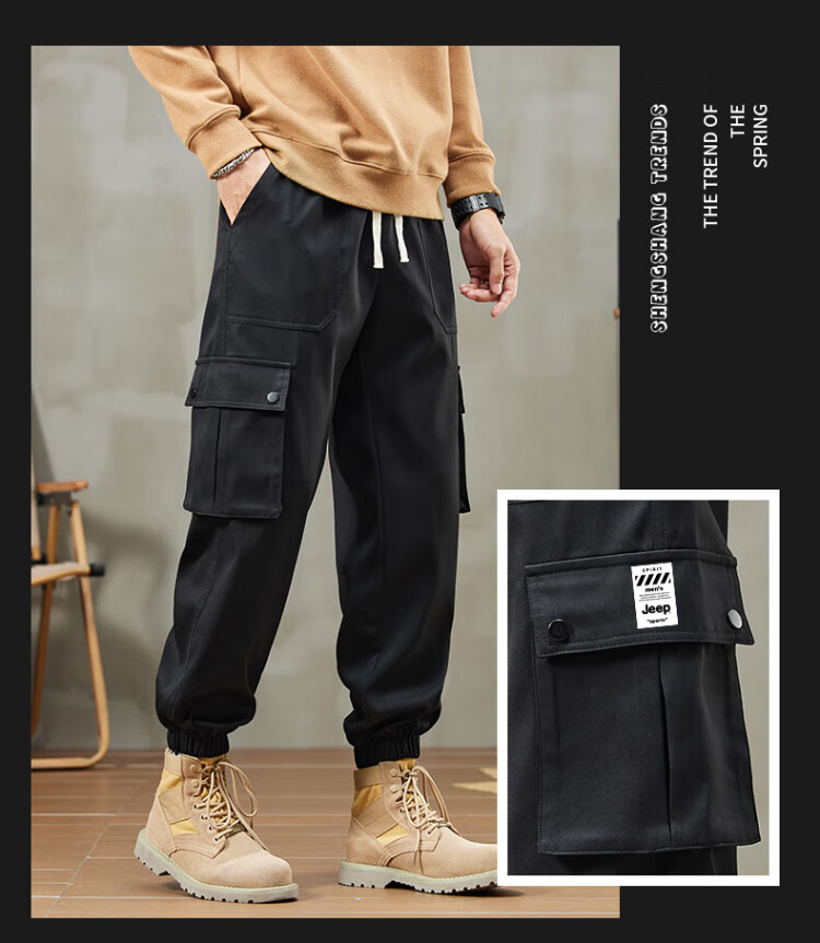 JEEP SPIRIT overalls men's autumn leggings pants men's classic trendy sports pants men's loose casual pants men's black 4XL