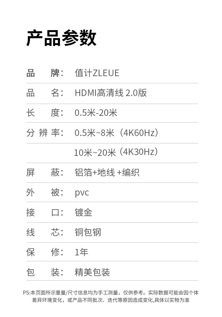 Value meter HDMI cable version 2.0 4K ultra-high definition cable 1.5 meters 3D video cable engineering grade laptop monitor set-top box TV projector data connection cable ZL-HB015