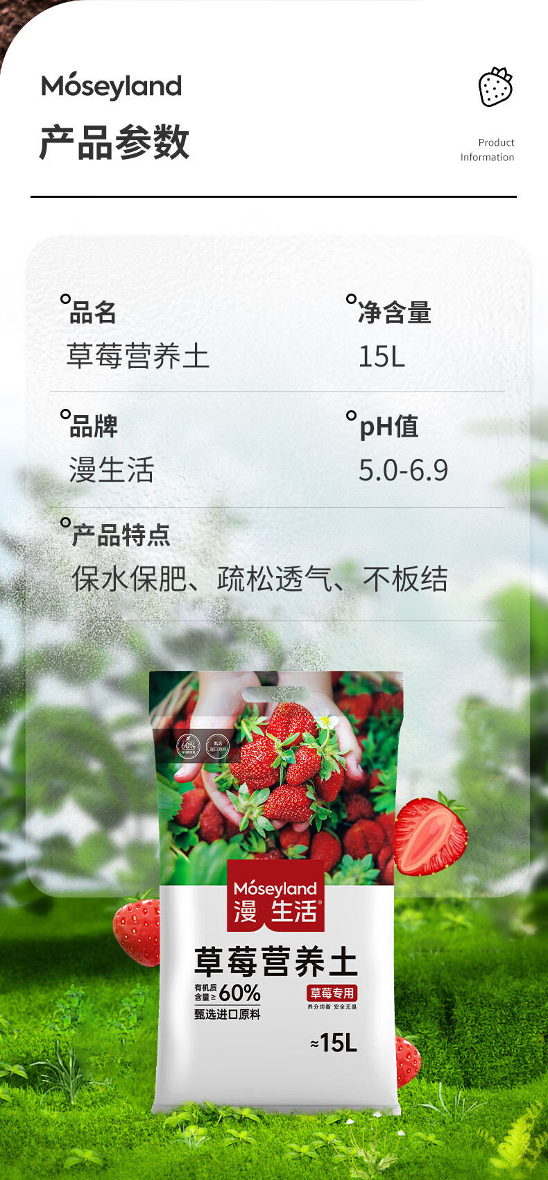 Manlife strawberry soil 15L special nutritional soil flower soil vegetable soil green plant fruit and vegetable organic planting soil balcony potting soil