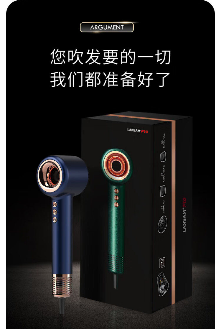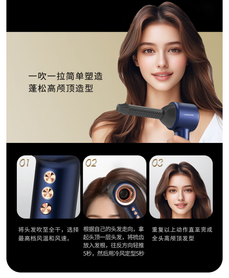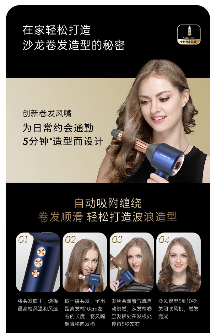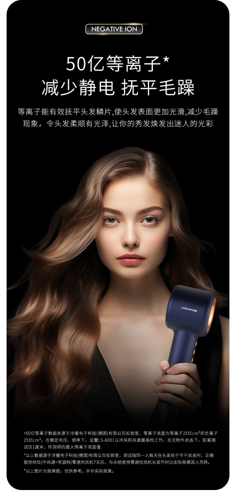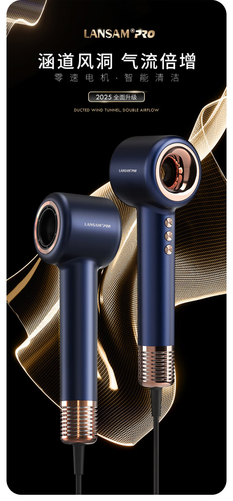 LANSAM zero-speed hair dryer household plasma hair care high-speed high-power high wind does not damage the hair negative ion hair dryer gift national subsidy youth version-Ye Mu Lan