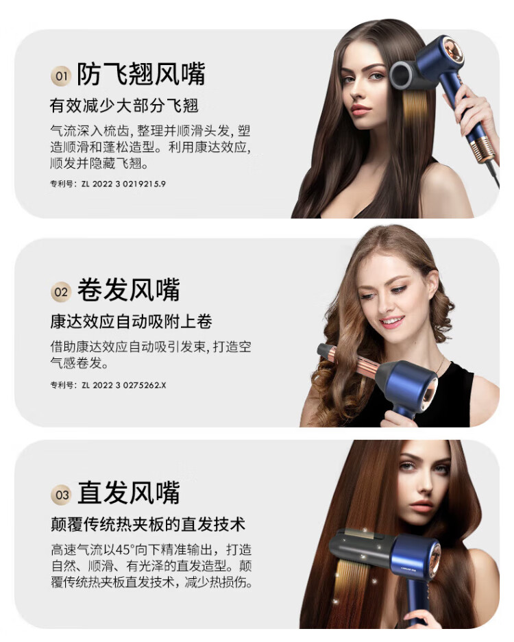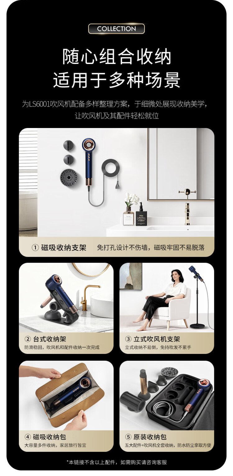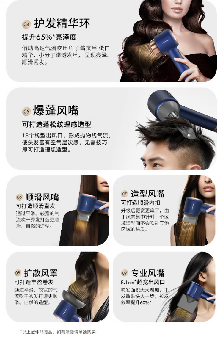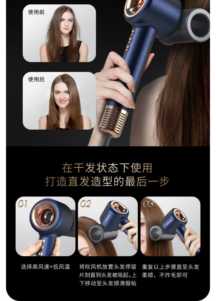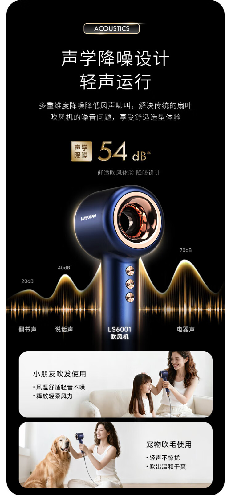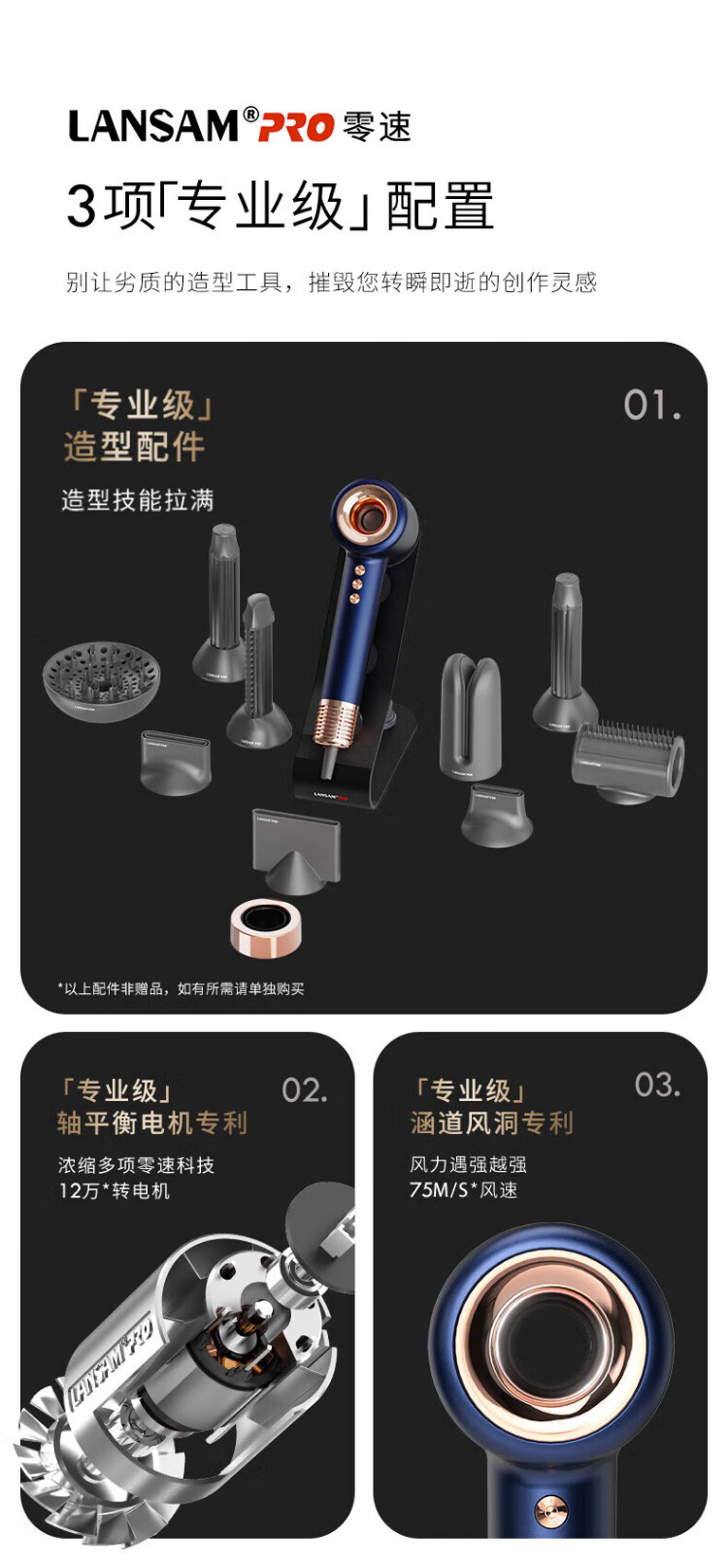 LANSAM zero-speed hair dryer household plasma hair care high-speed high-power high wind does not damage the hair negative ion hair dryer gift national subsidy youth version-Ye Mu Lan