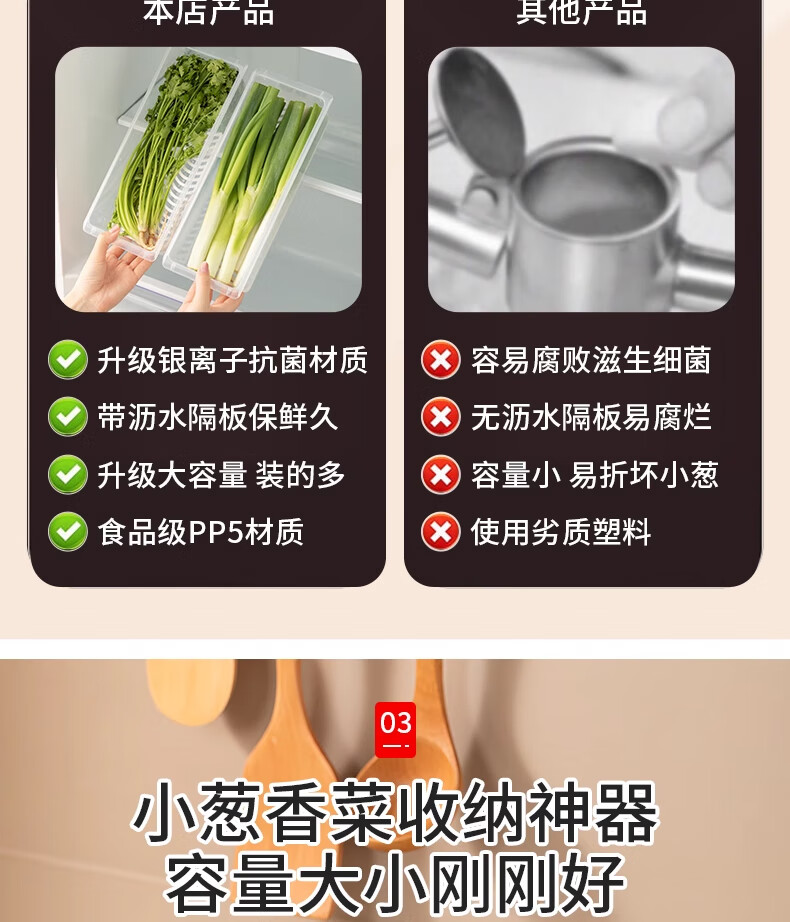 Home KATEI STORY Japanese antibacterial onion crisper drain food grade long coriander green onion ginger garlic refrigerator storage box onion segment box