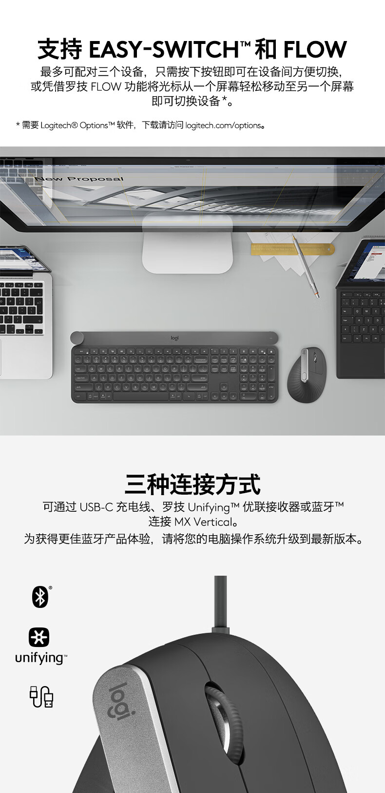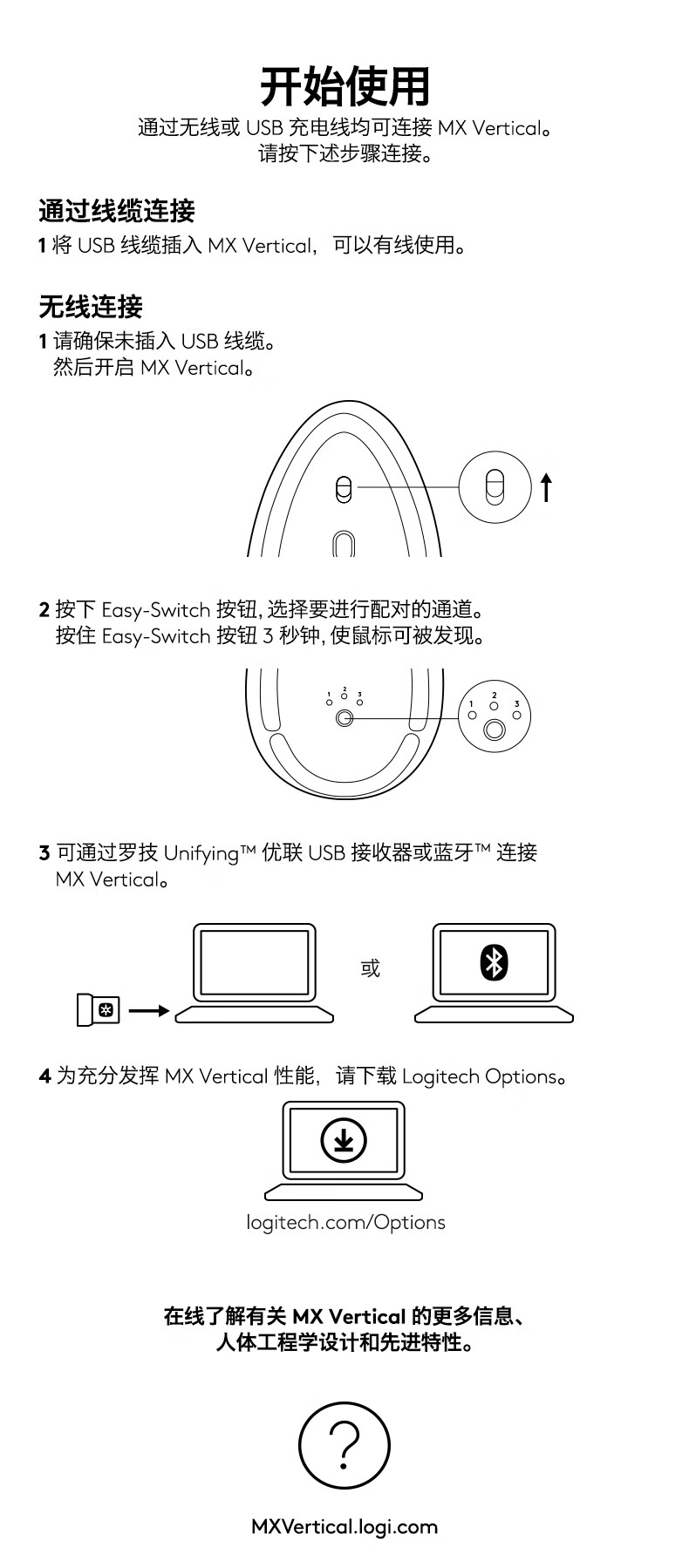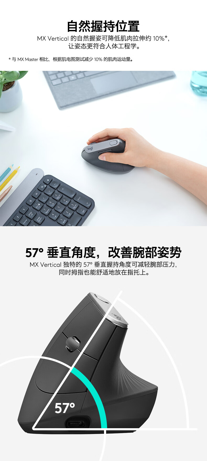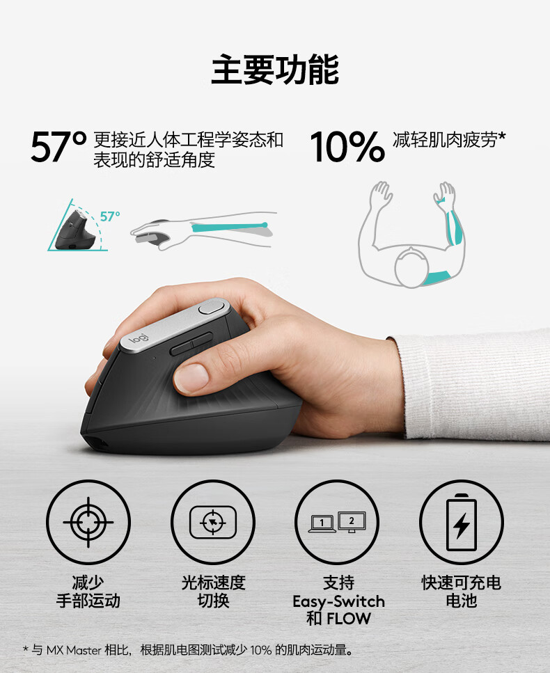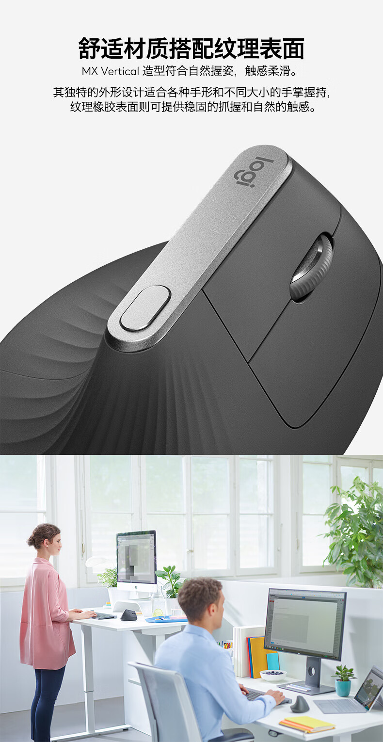 Logitech Master Series MX Vertical Enterprise Wireless Bluetooth Mouse LIFT Business Office Mouse Ergonomic Vertical Mouse Vertical Black Gray