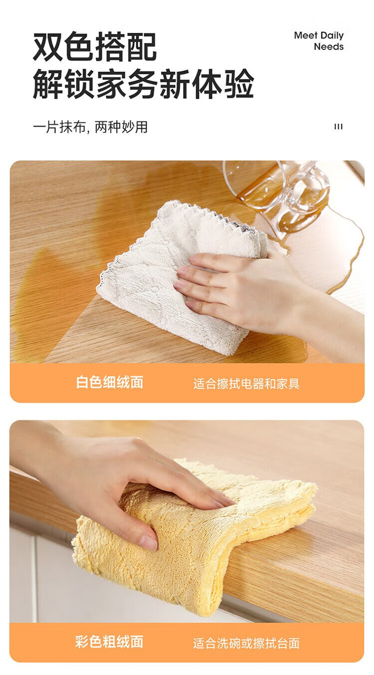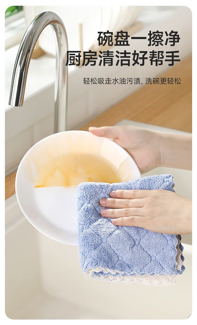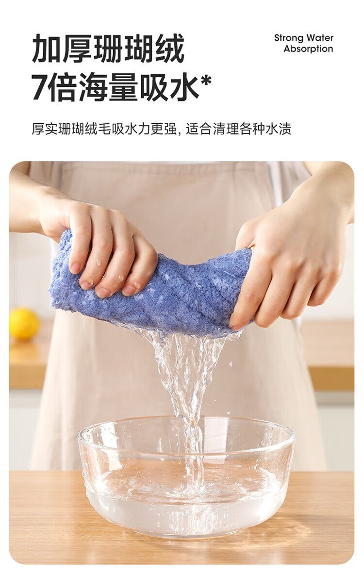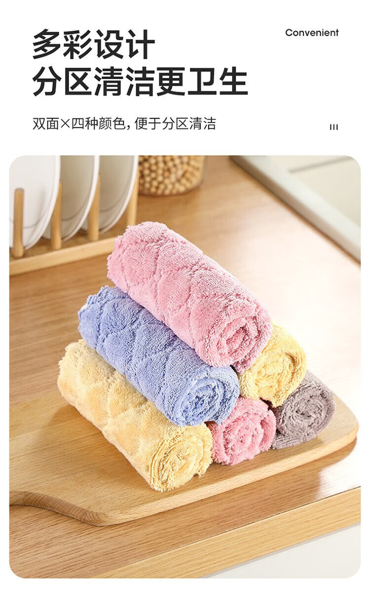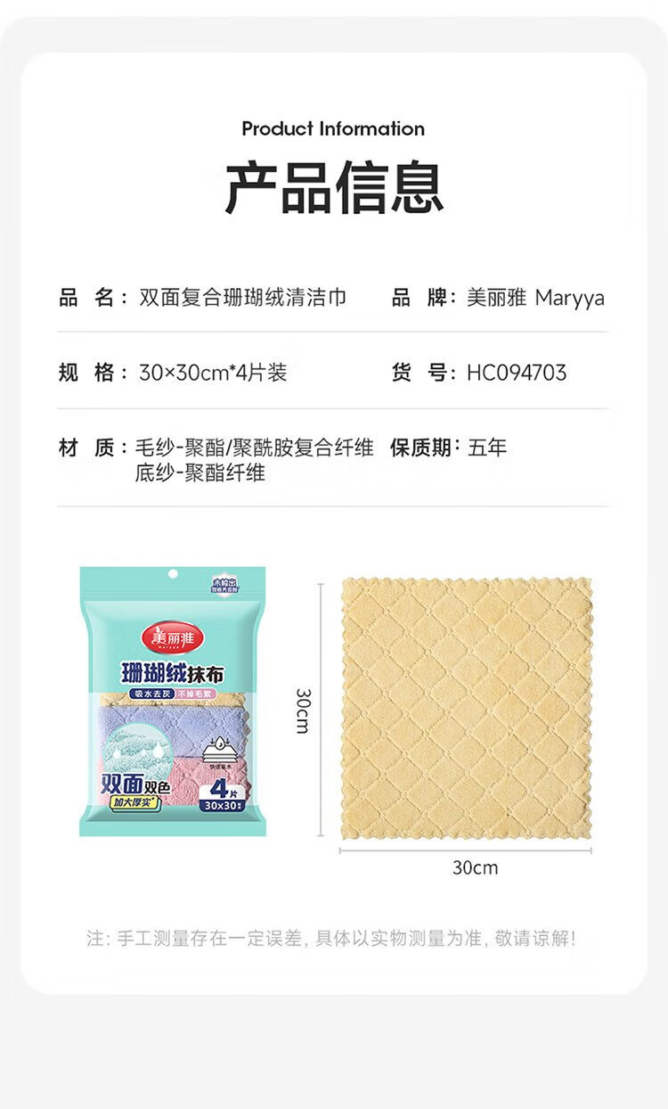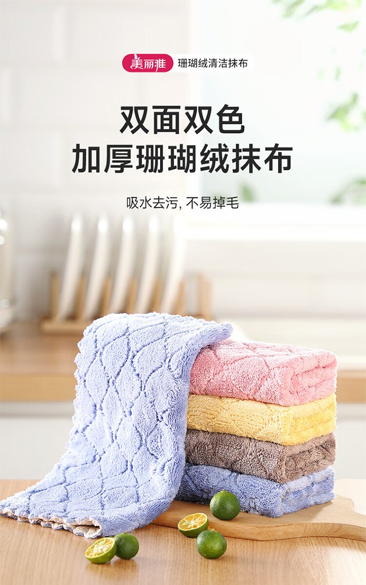Meiya coral velvet rags 30*30cm 4 pieces for kitchen washing dishes, wiping dust and wiping tables and furniture, special for absorbing water and not easy to leave marks and lint