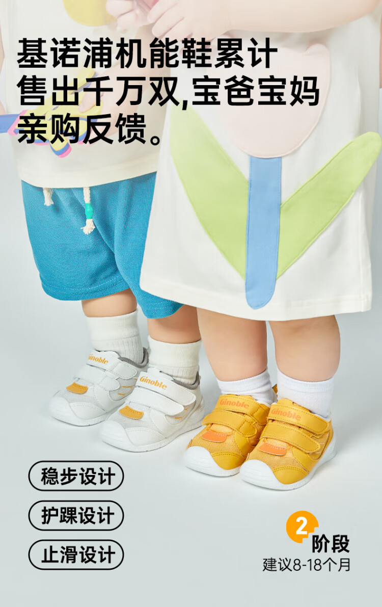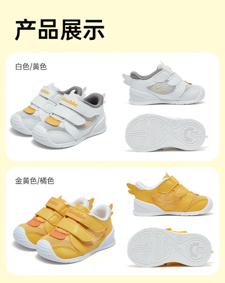 Ginoble baby toddler shoes 8-18 months baby functional shoes summer breathable walking shoes GB2201 white
