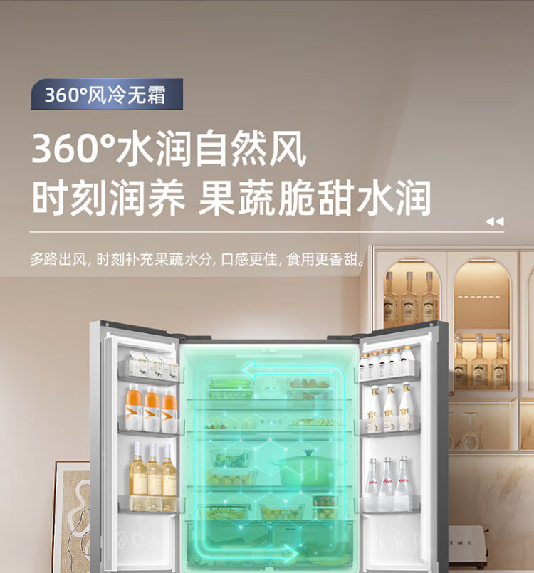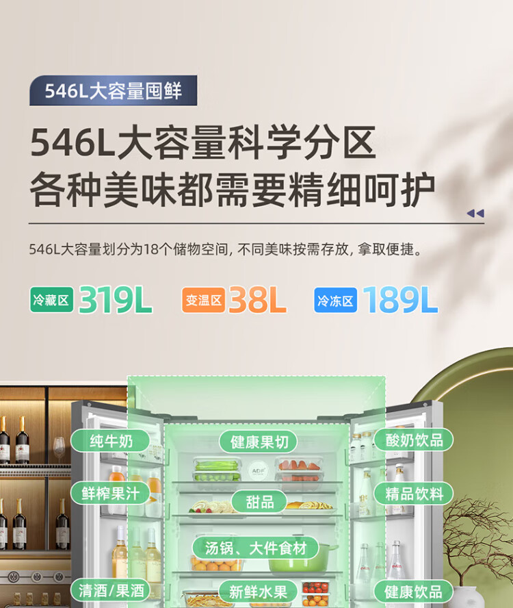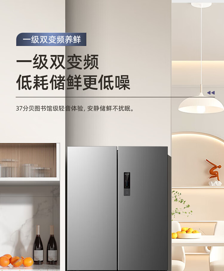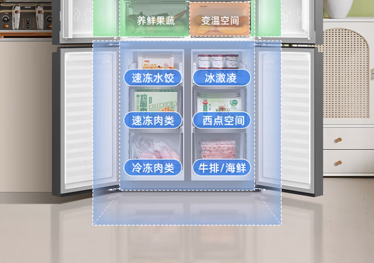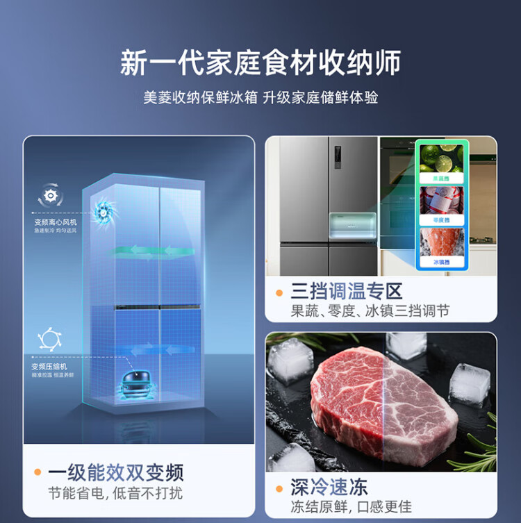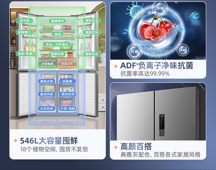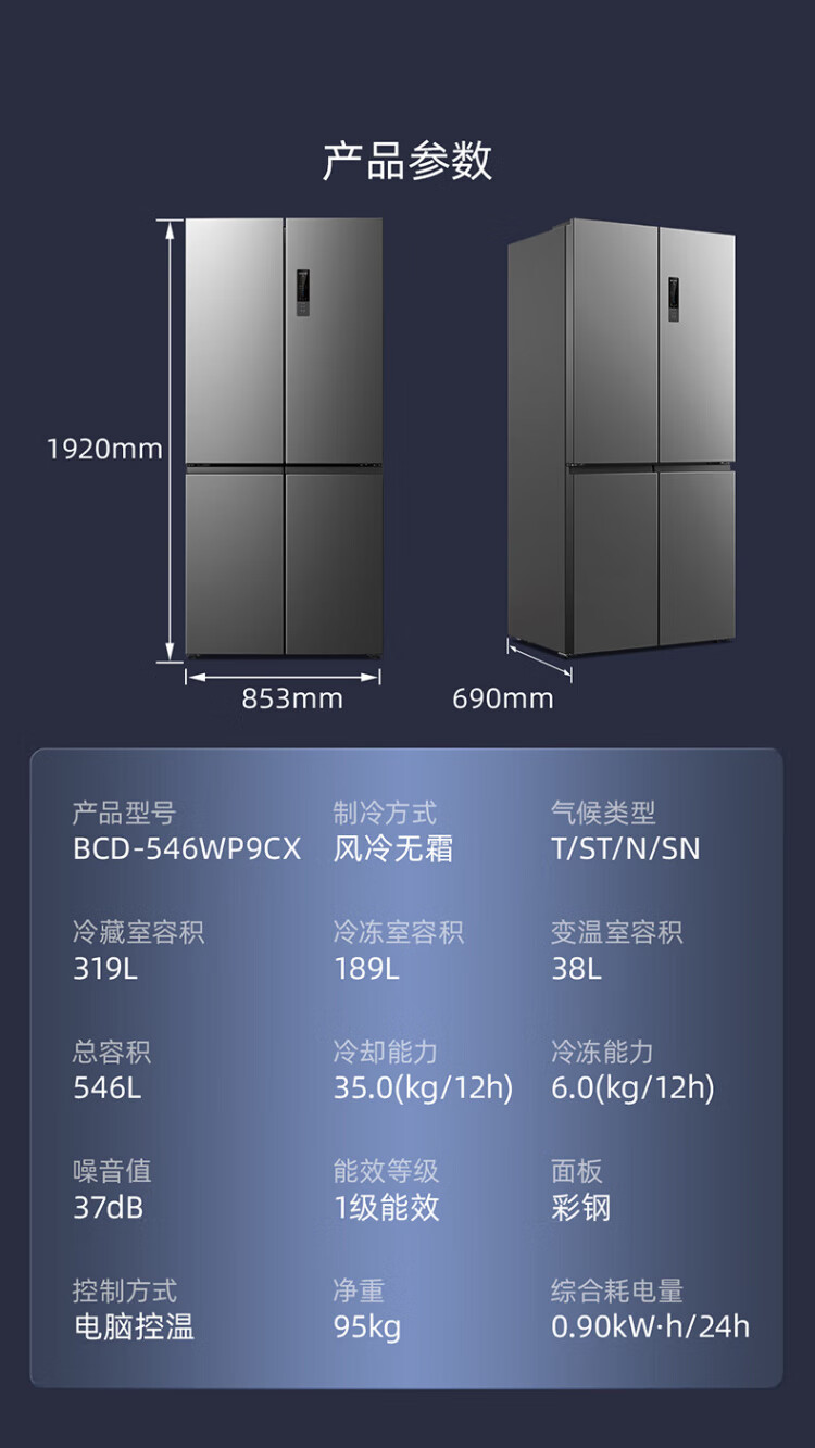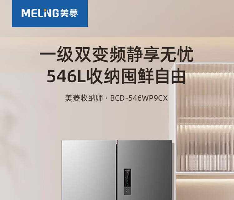 MeiLing Storage Division 546 liter dual frequency conversion first-level energy efficiency cross-fold four-door refrigerator household large capacity air-cooled odor-free national subsidy BCD-546WP9CX elegant gray