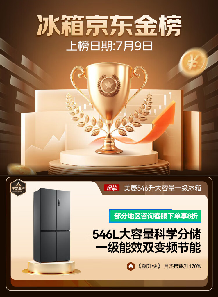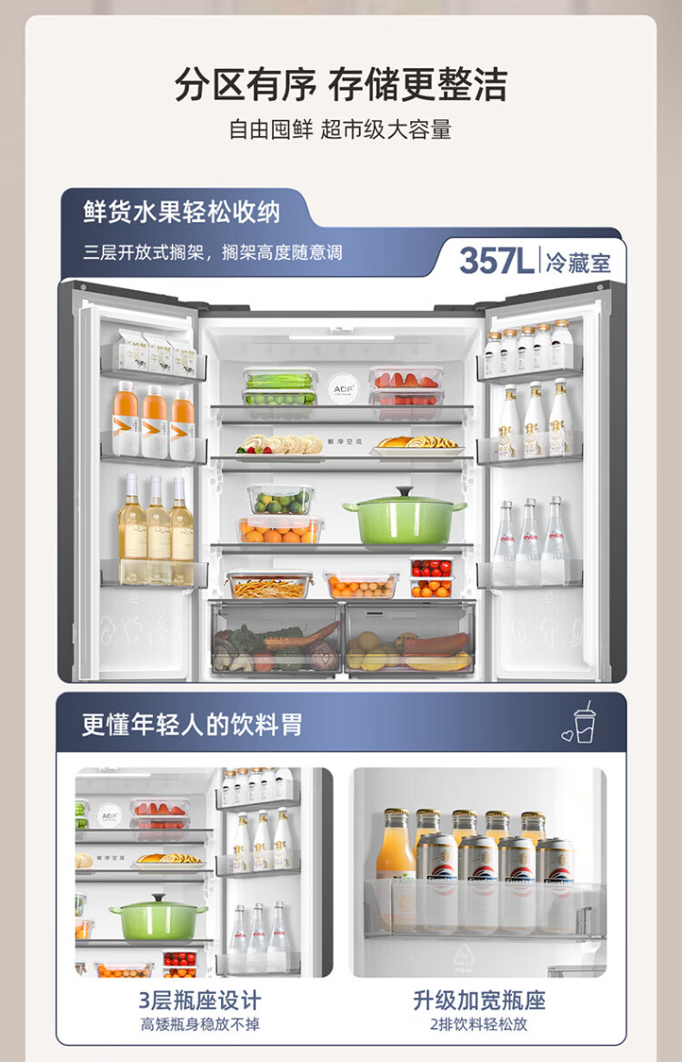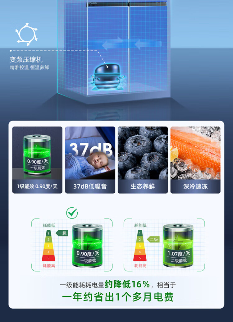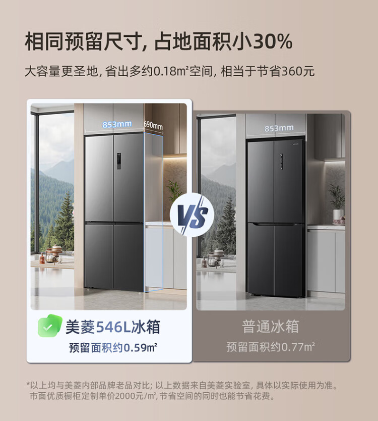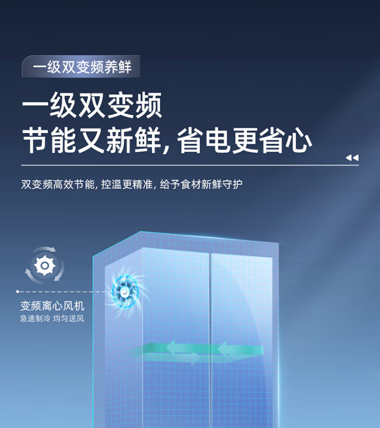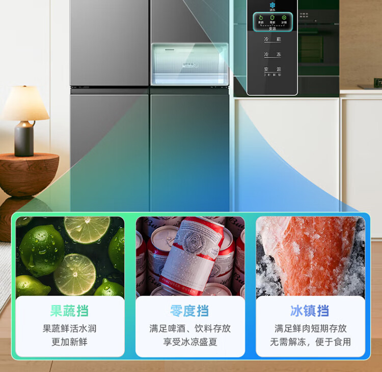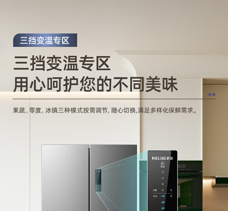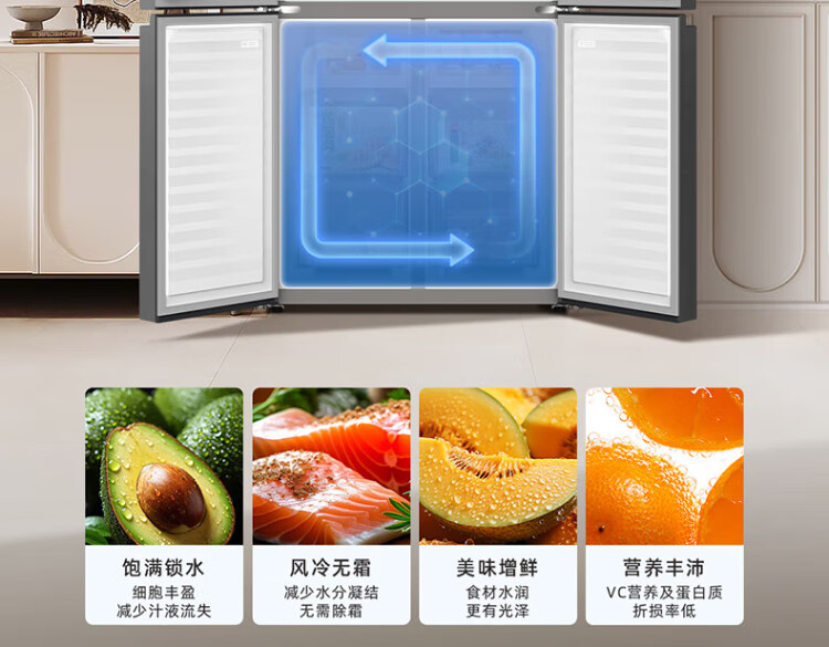MeiLing Storage Division 546 liter dual frequency conversion first-level energy efficiency cross-fold four-door refrigerator household large capacity air-cooled odor-free national subsidy BCD-546WP9CX elegant gray