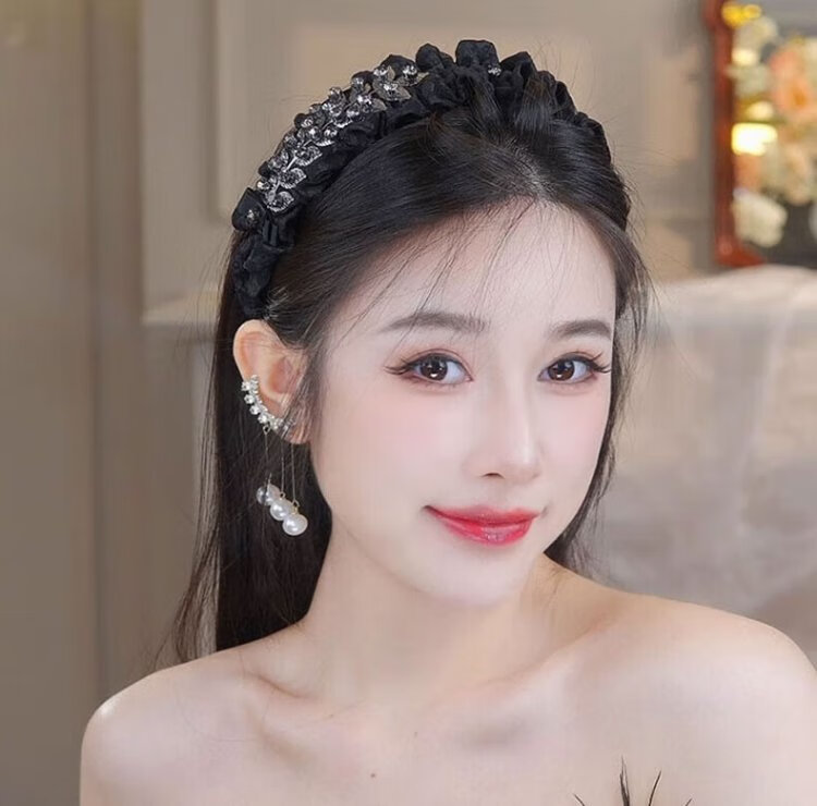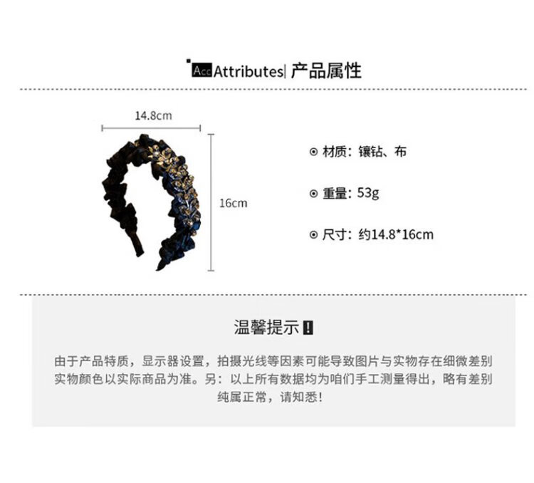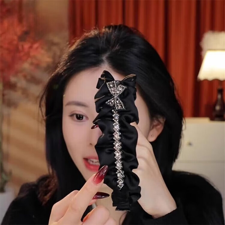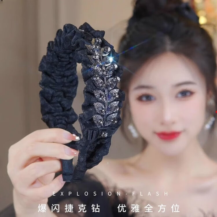 Xiangwan hairband hairpin temperament rhinestone leaf pleated hairband women's high skull pressure hair high-end broken hair hair bundle headdress