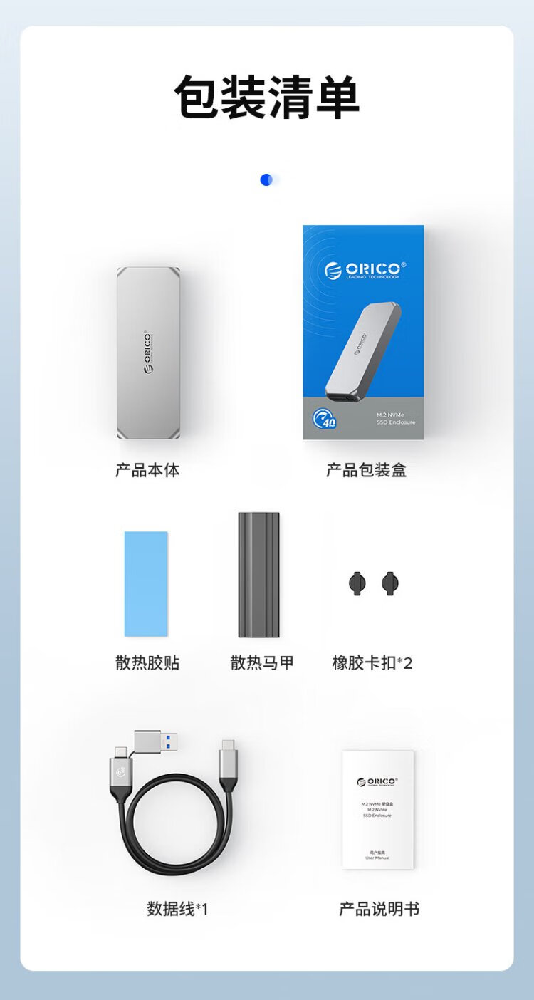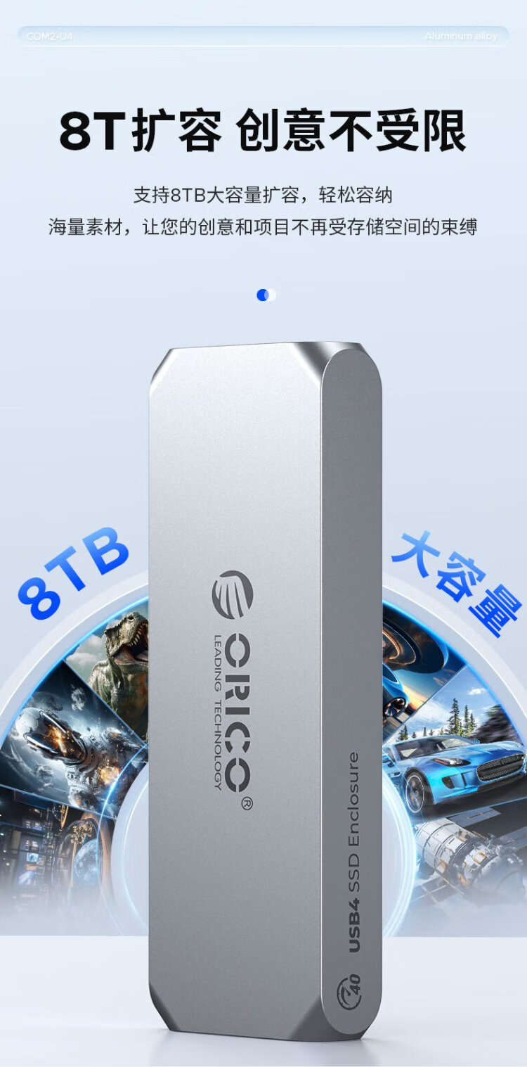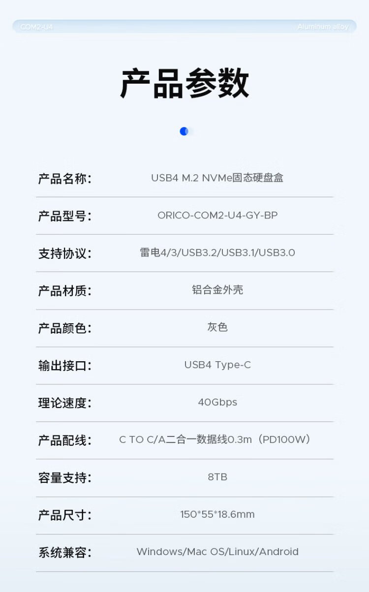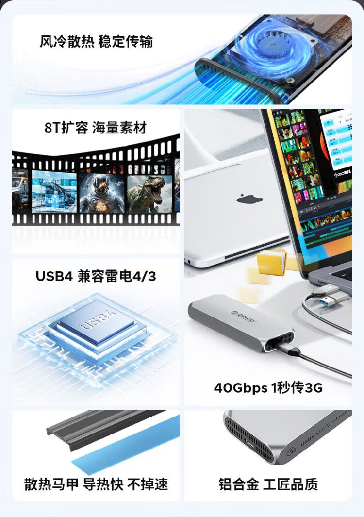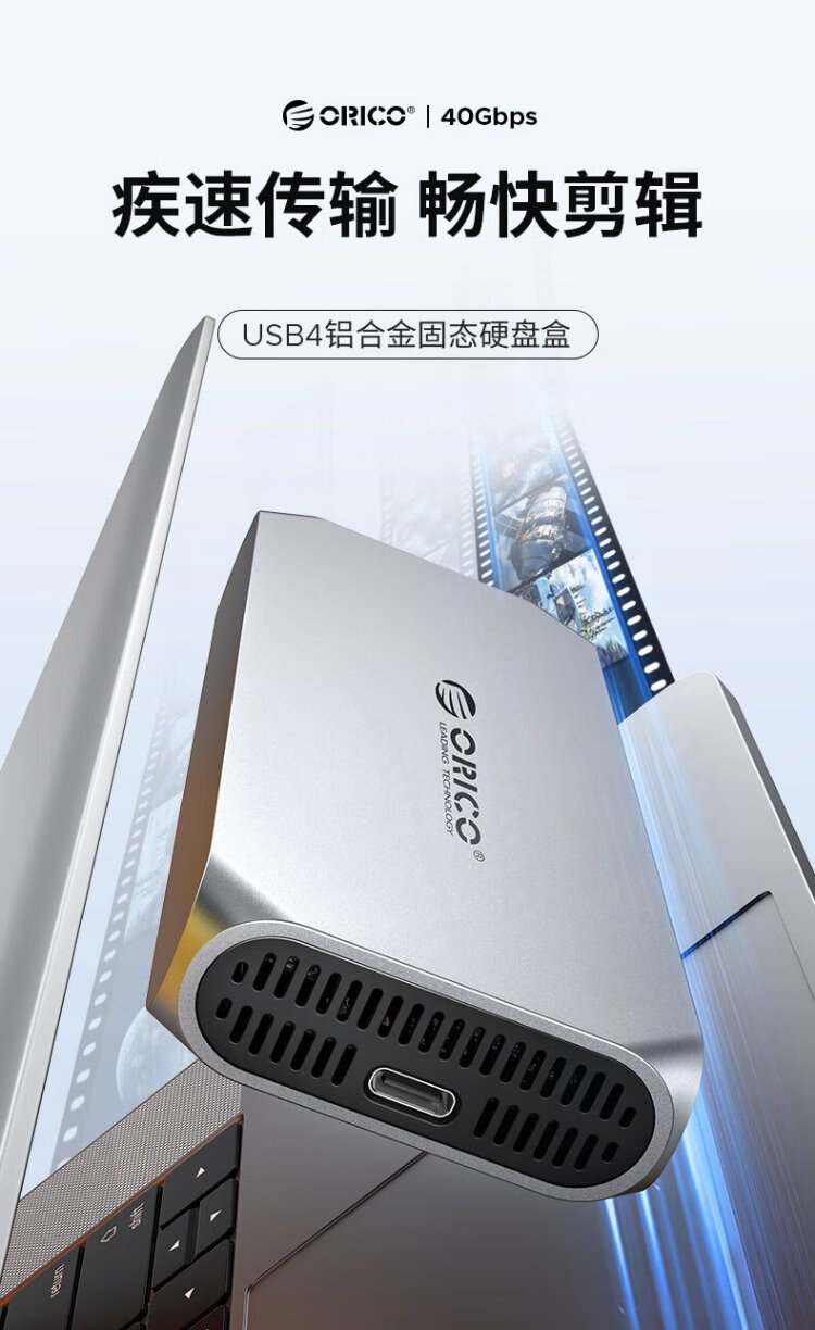 ORICO USB4-Festplattengehäuse 40 Gbit/s kompatibel mit Thunderbolt 4/3 M.2 NVMe Solid-State-Laufwerkgehäuse passend für iPhone Mac Mini Notebook SSD Solid State externe Erweiterung COM2